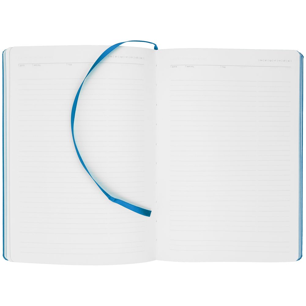 Ежедневник с твердой обложкой. Выполнен из материала Latte, ярко-синий, дополнен ляссе в цвет обложки.
