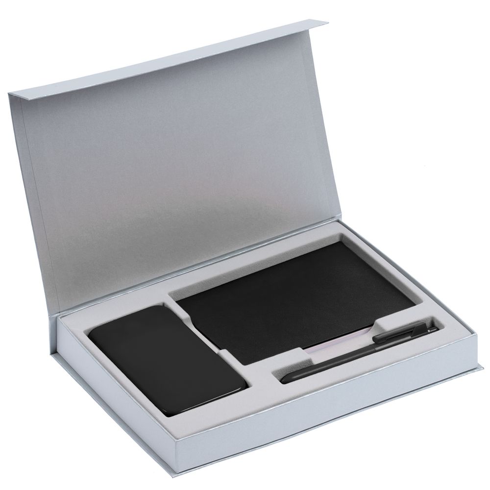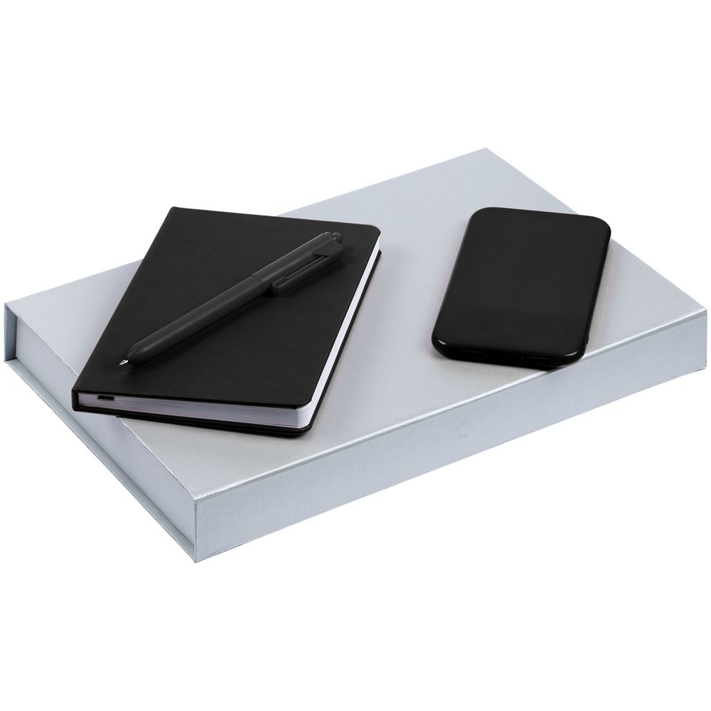 блокнот - искусственная кожа; аккумулятор - пластик; покрытие софт-тач; ручка - пластик; коробка - переплетный картон