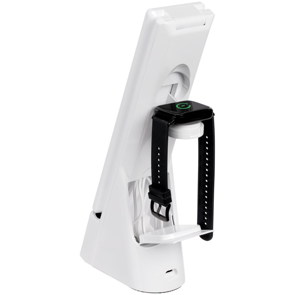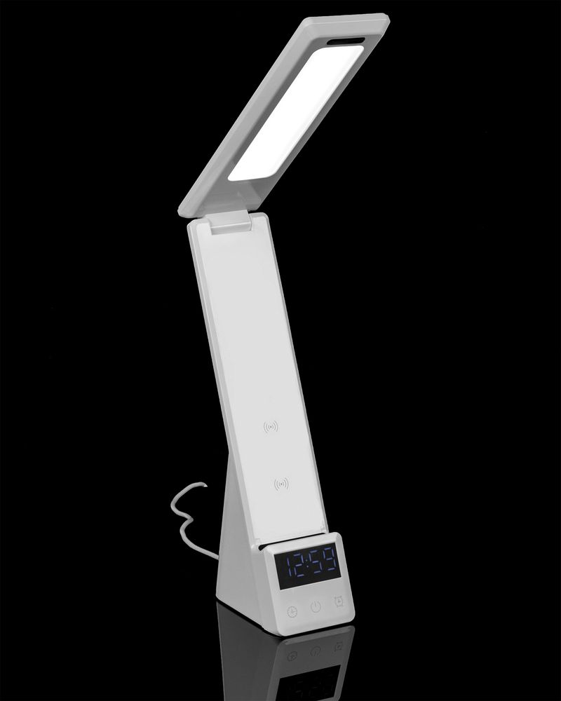 Powerack — многофункциональное устройство, которое сочетает в себе функции настольной лампы, электронных часов с будильником, станции беспроводной и проводной зарядки устройств.