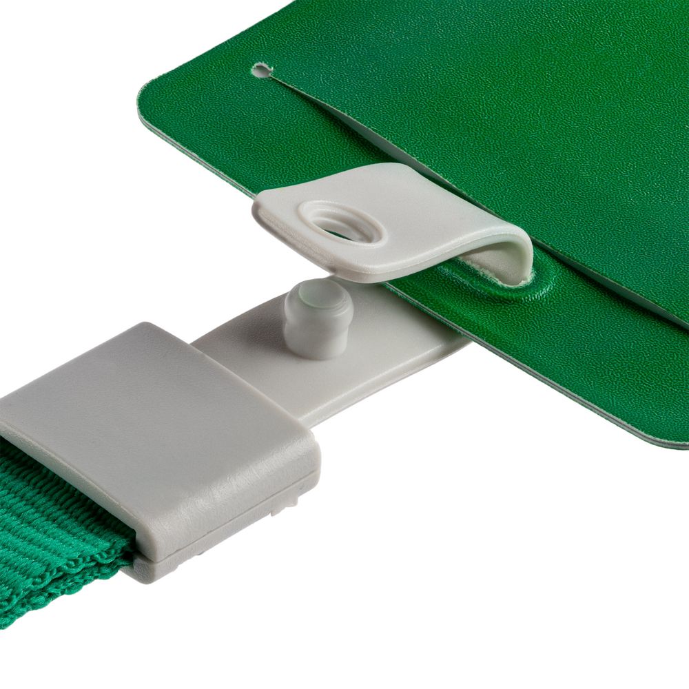 Карман для пропуска крепится к ленте с помощью пластиковой клипсы.