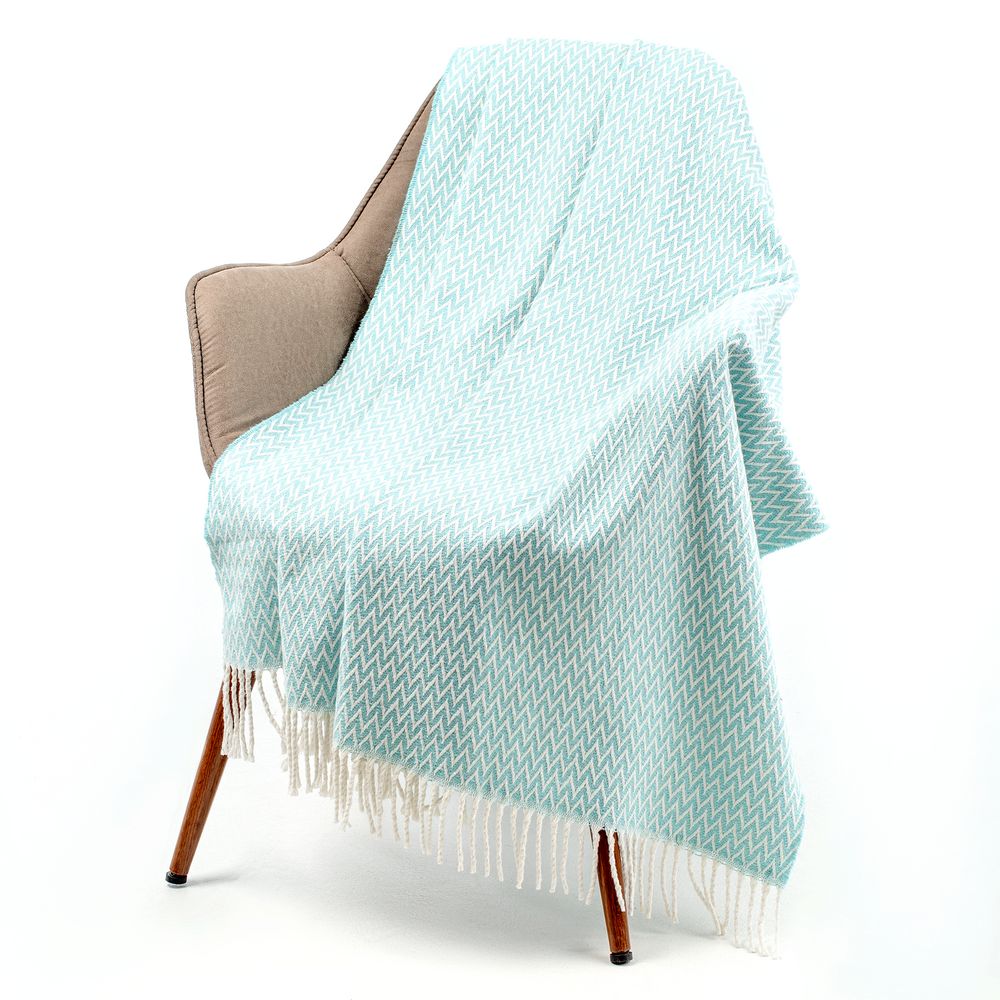 Плед Sagunt с ненавязчивым зигзагообразным узором и аккуратной бахромой подарит мгновения уюта и радости, порадует своим нежным дизайном и окутает теплом.