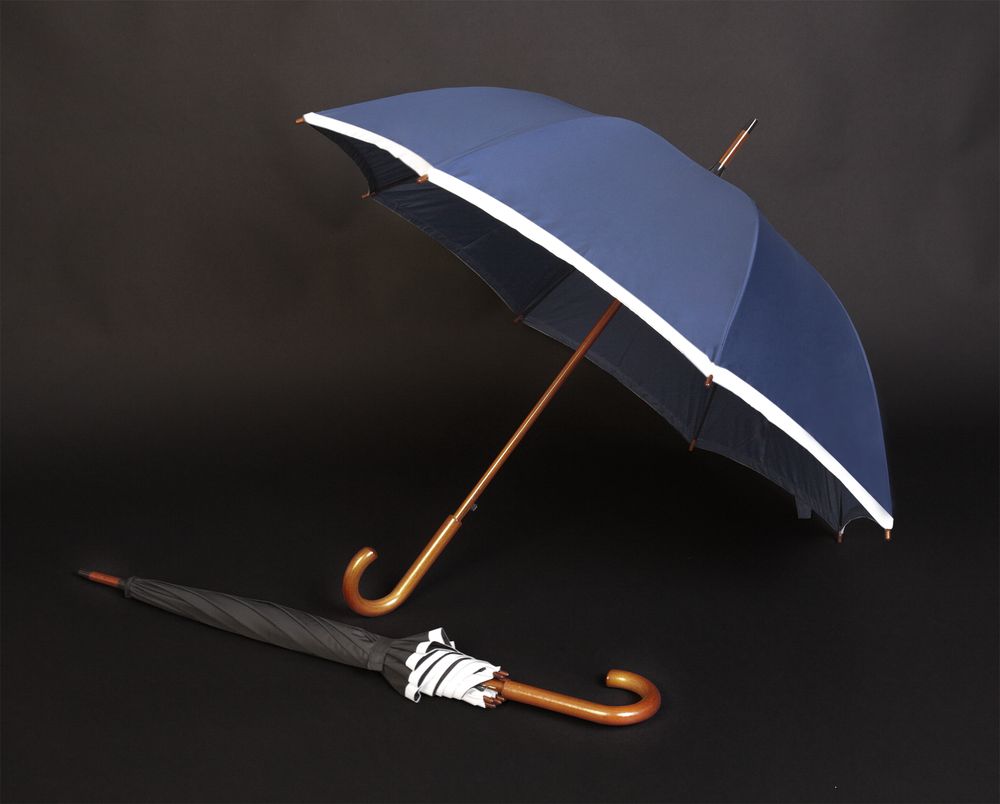 Зонт со светоотражающей полосой обеспечит вас дополнительной защитой в темное время суток, повышая видимость для водителей и пешеходов благодаря ярким отражающим элементам.