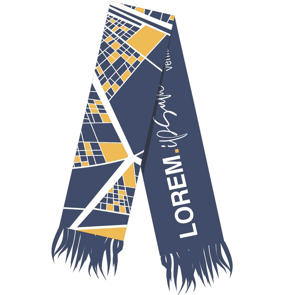 Шарф с вывязанным логотипом и индивидуальным рисунком в фирменной цветовой гамме.