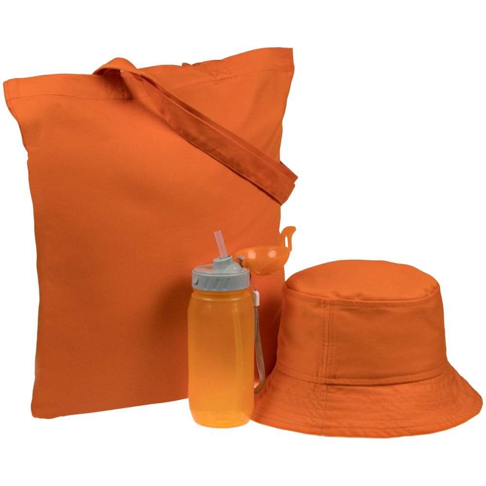 бутылка для воды - пластик, силикон; панама, сумка - хлопок 100%