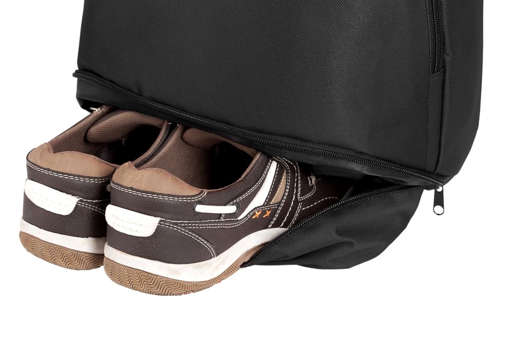 Вместительный рюкзак с отделением для обуви пригодится на тренировке или в короткой поездке — дополнительная пара обуви отделена от основного объема и не пачкает одежду.Выдерживает нагрузку до 10 кг.