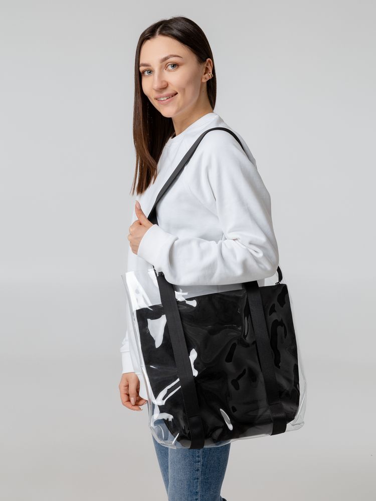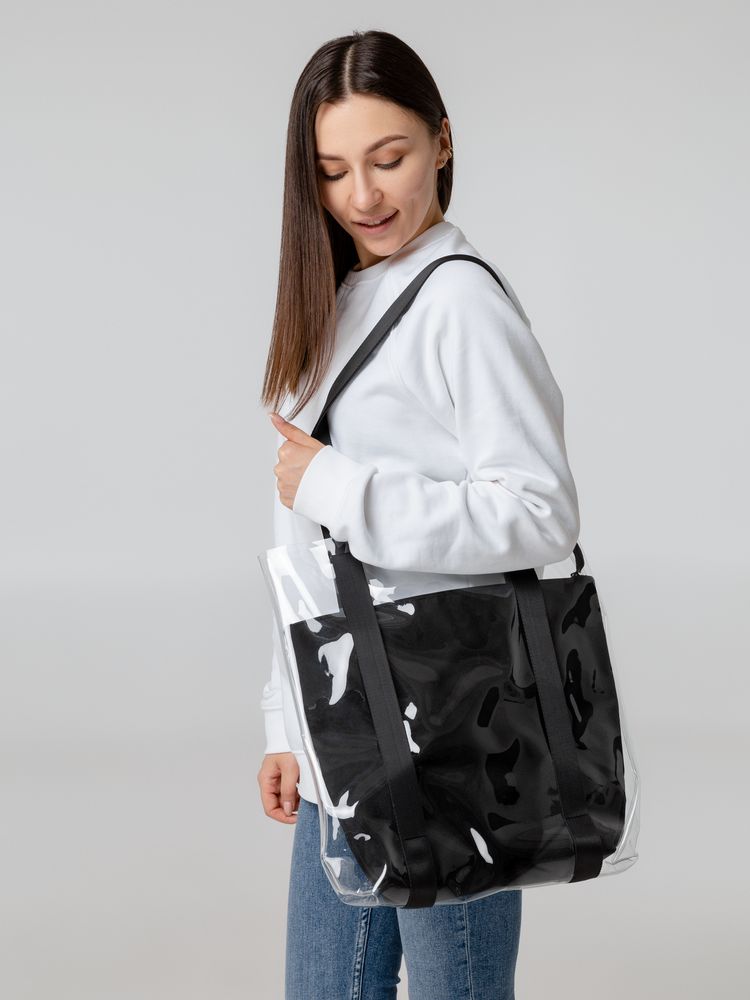 Шопер из ПВХ не промокает, легко чистится и выглядит стильно в любое время года и при любой погоде.