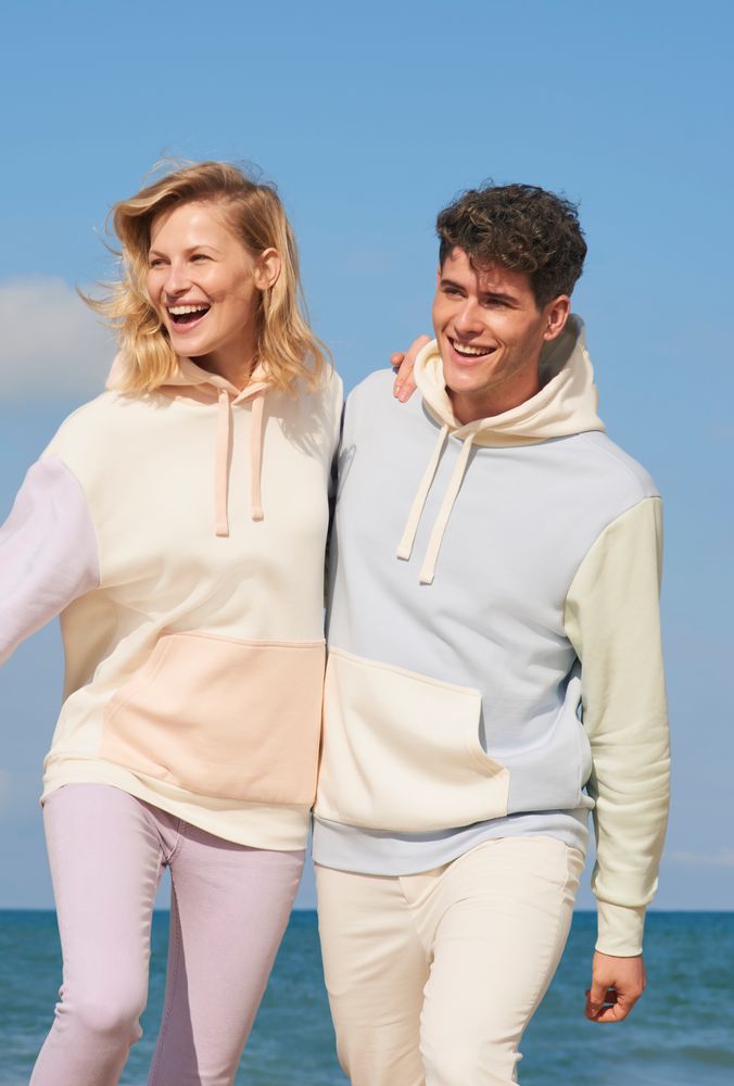 Трехцветное утепленное худи унисекс из органического хлопка и переработанного полиэстера.