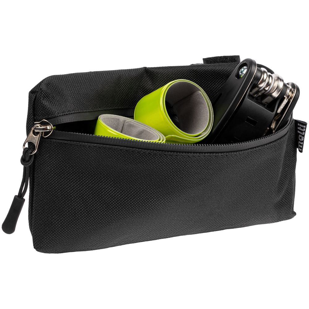 Этот набор велосипедиста идеально подходит для повседневного использования. Сумка, в которую легко помещаются велосипедный мультитул, светоотражающие браслеты и другие необходимые в пути мелочи, крепится к рулю или к раме лентами велкро и не мешает езде.