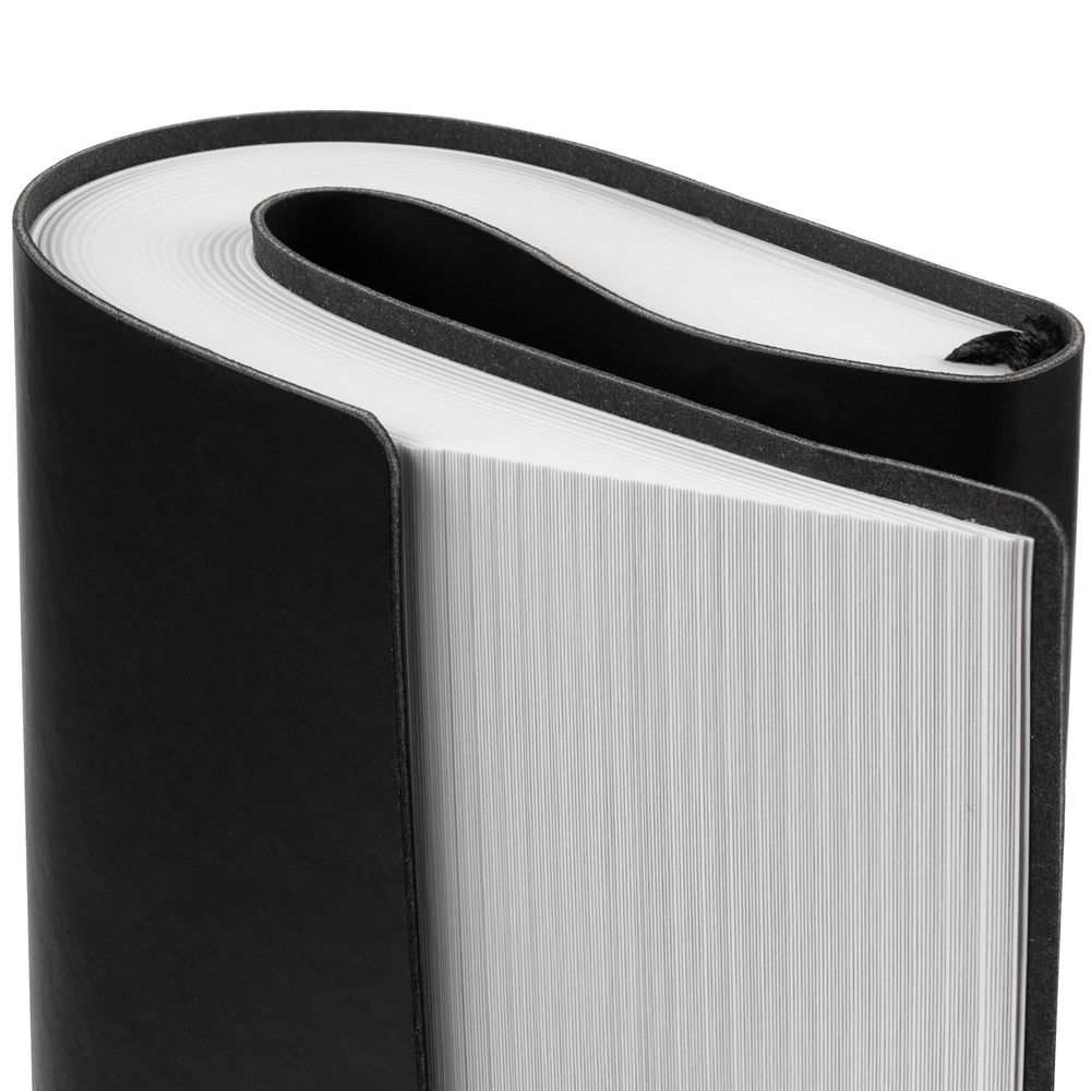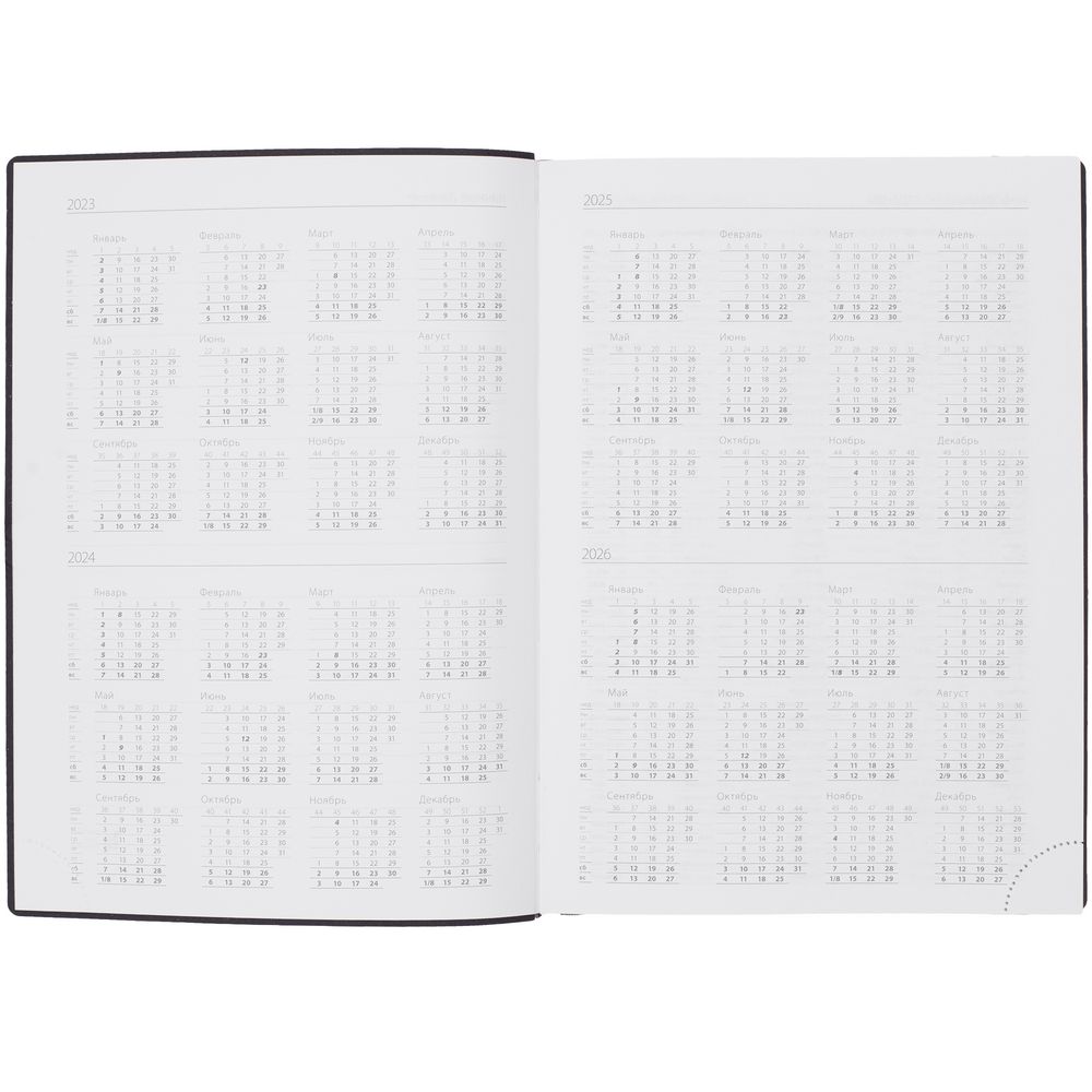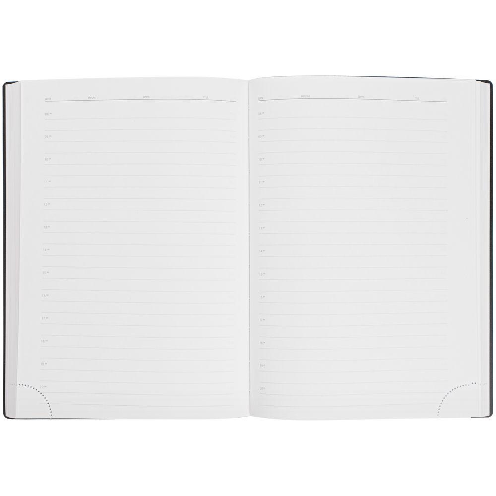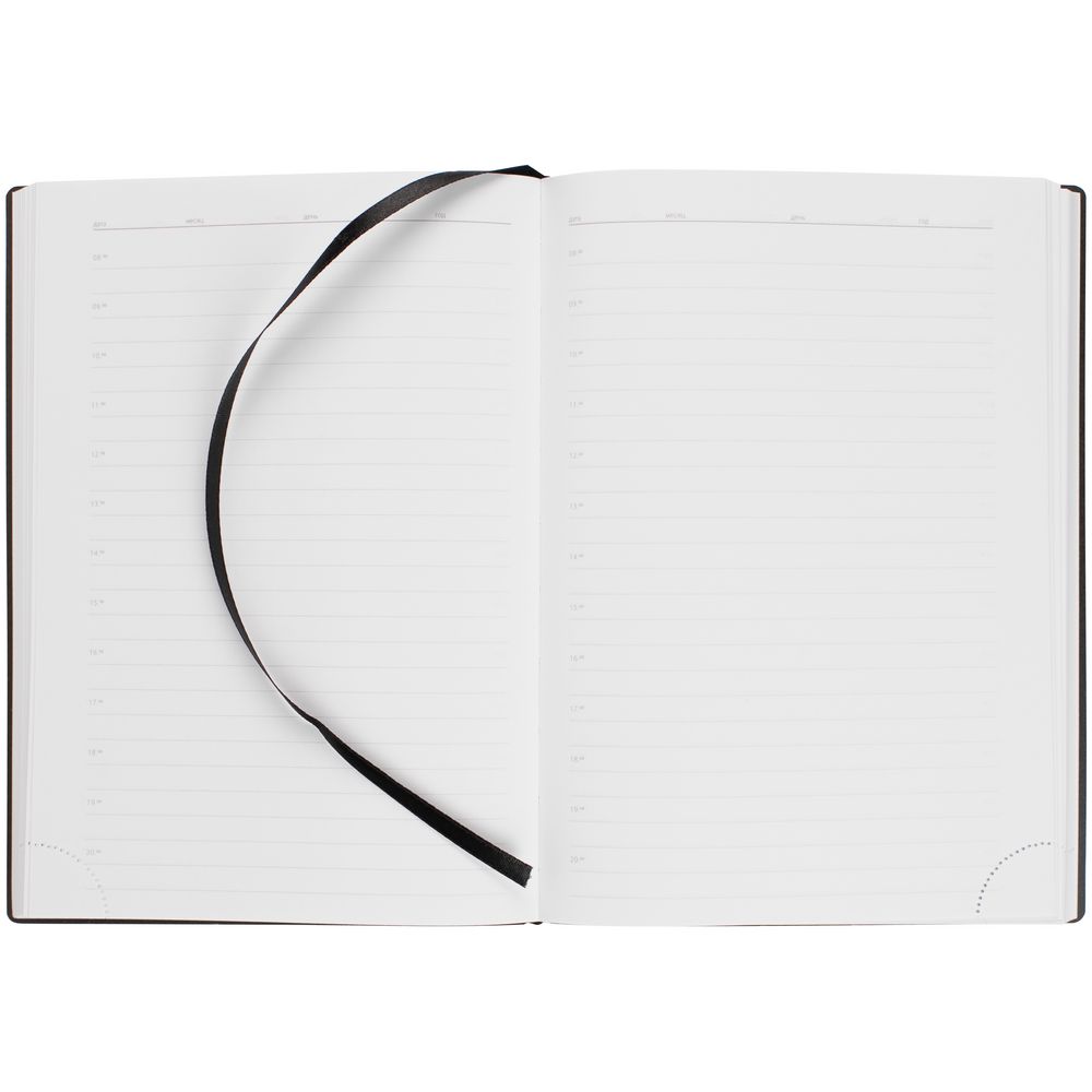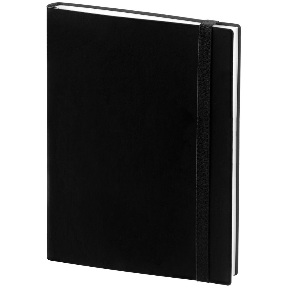 Ежедневник с гибкой обложкой выполнен из материала Brand, черный АА, и дополнен резинкой шириной 1 см, капталом и ляссе черного цвета.