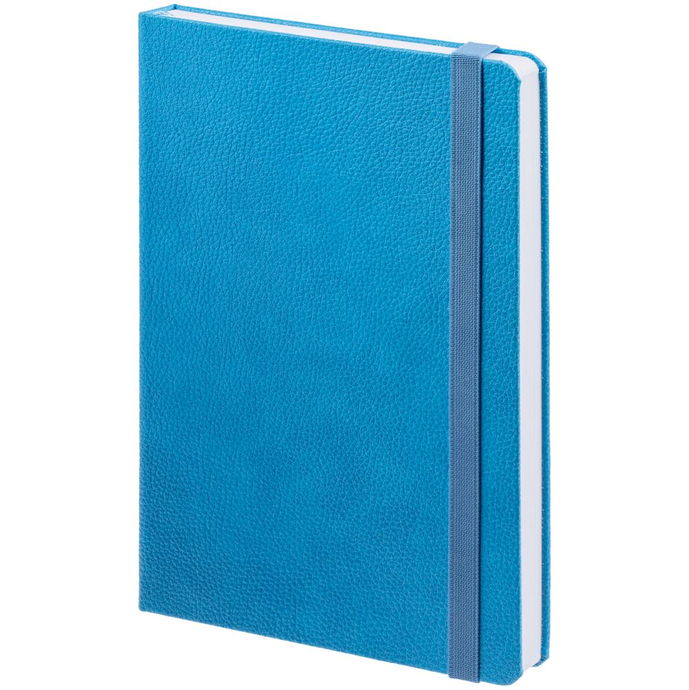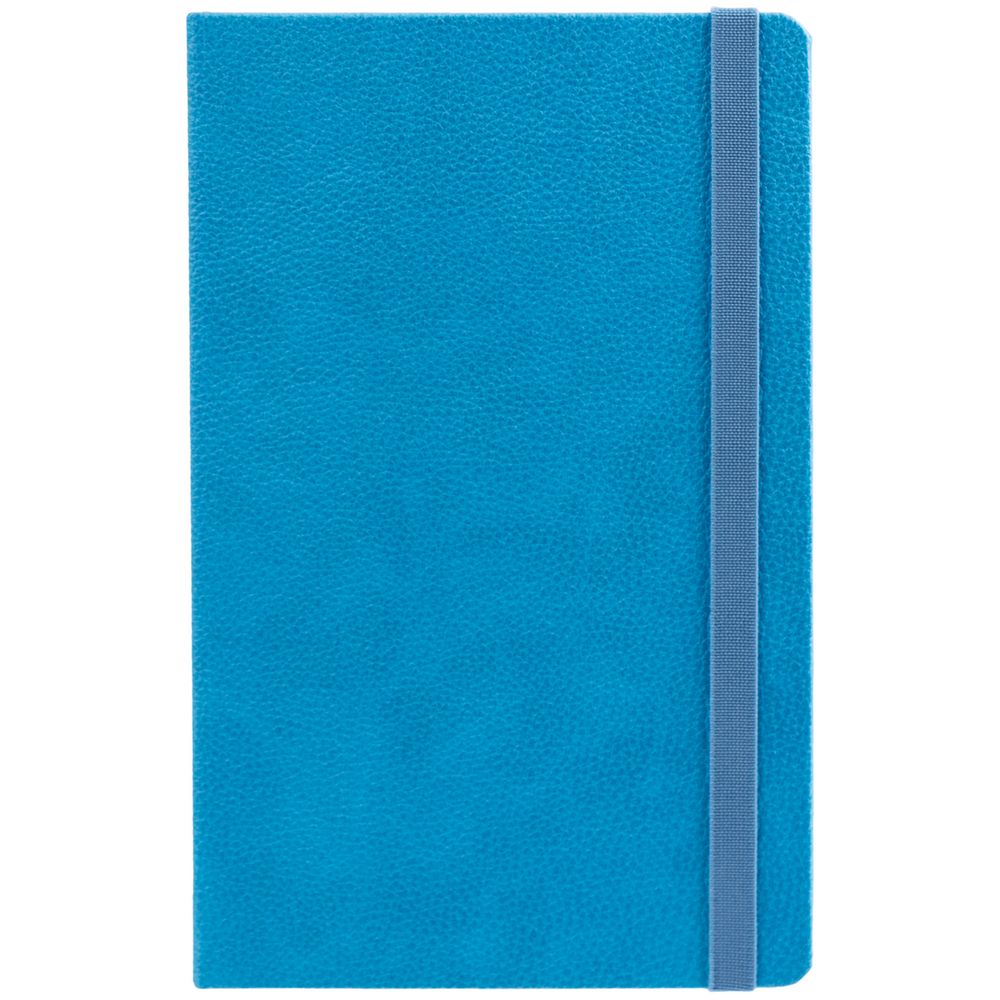Ежедневник с твердой обложкой, выполнен из материала LaFite, голубой JJ, дополнен резинкой и ляссе в цвет обложки.