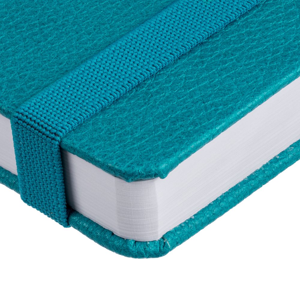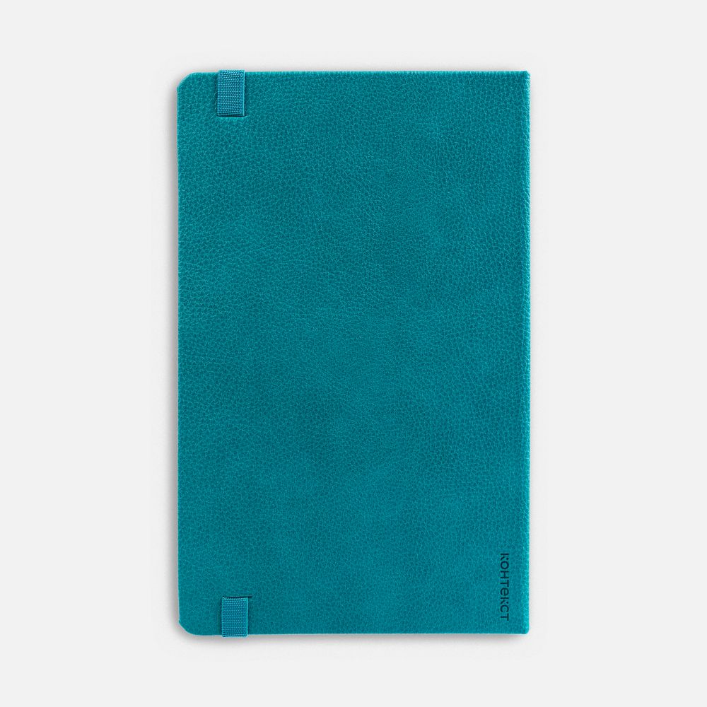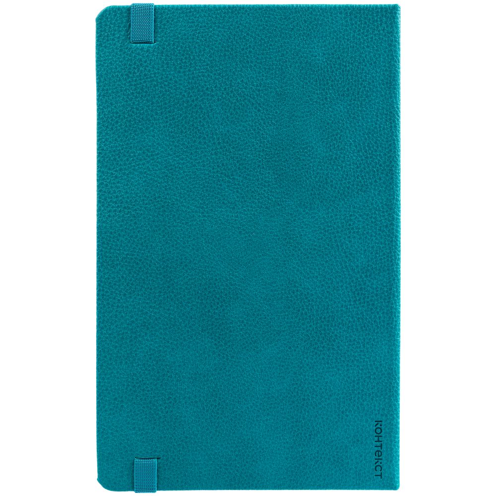 Ежедневник с твердой обложкой, выполнен из материала LaFite, цвет морской волны II, дополнен резинкой и ляссе в цвет обложки.