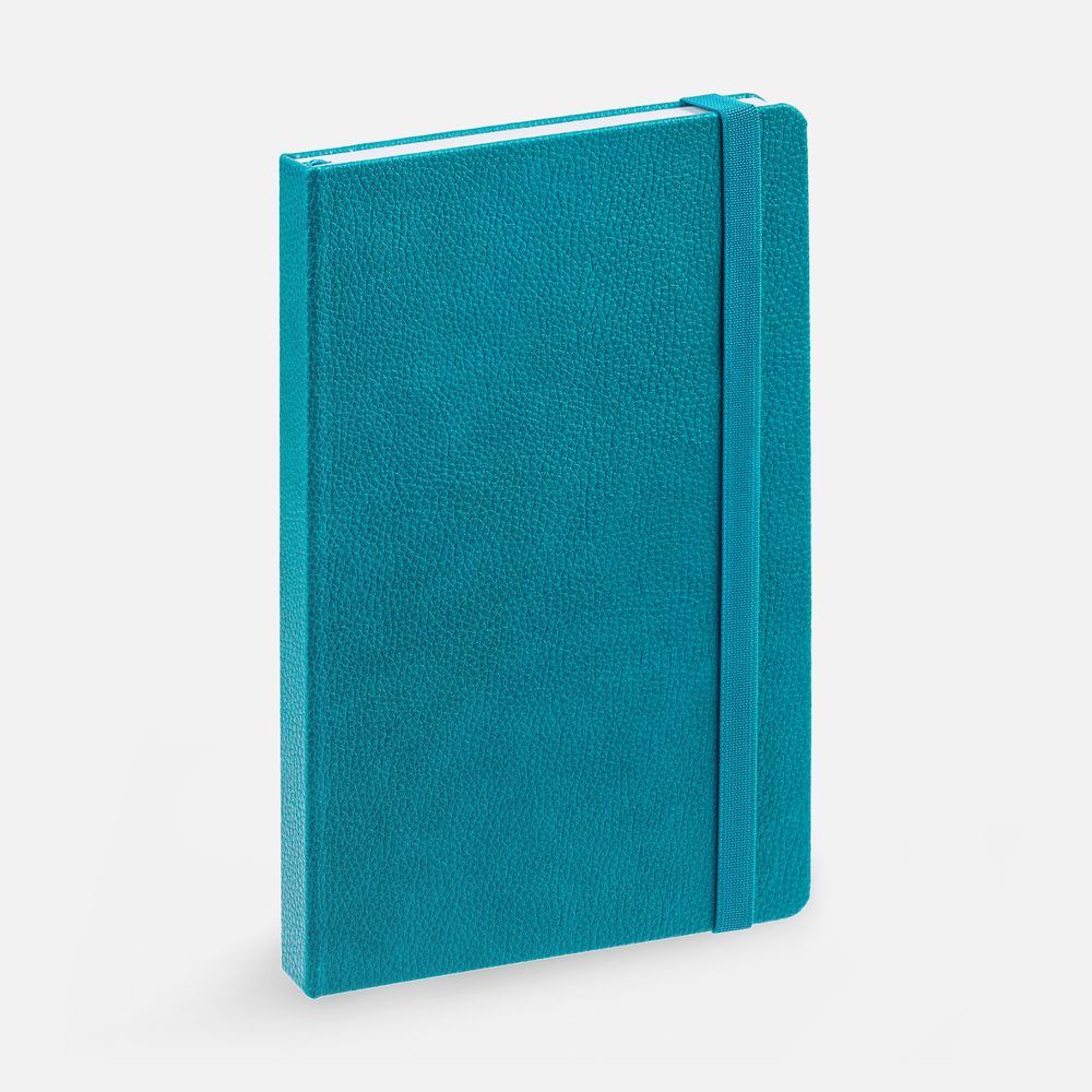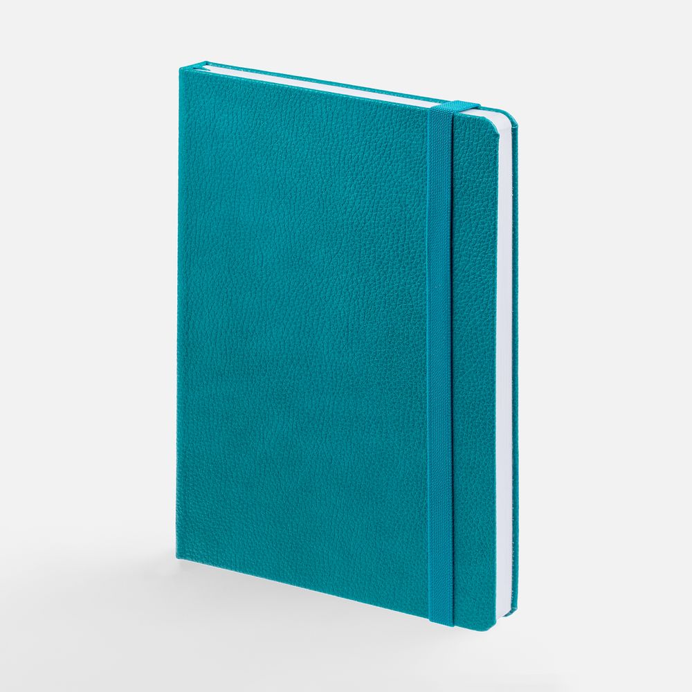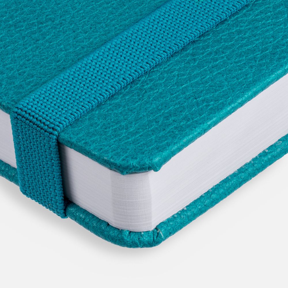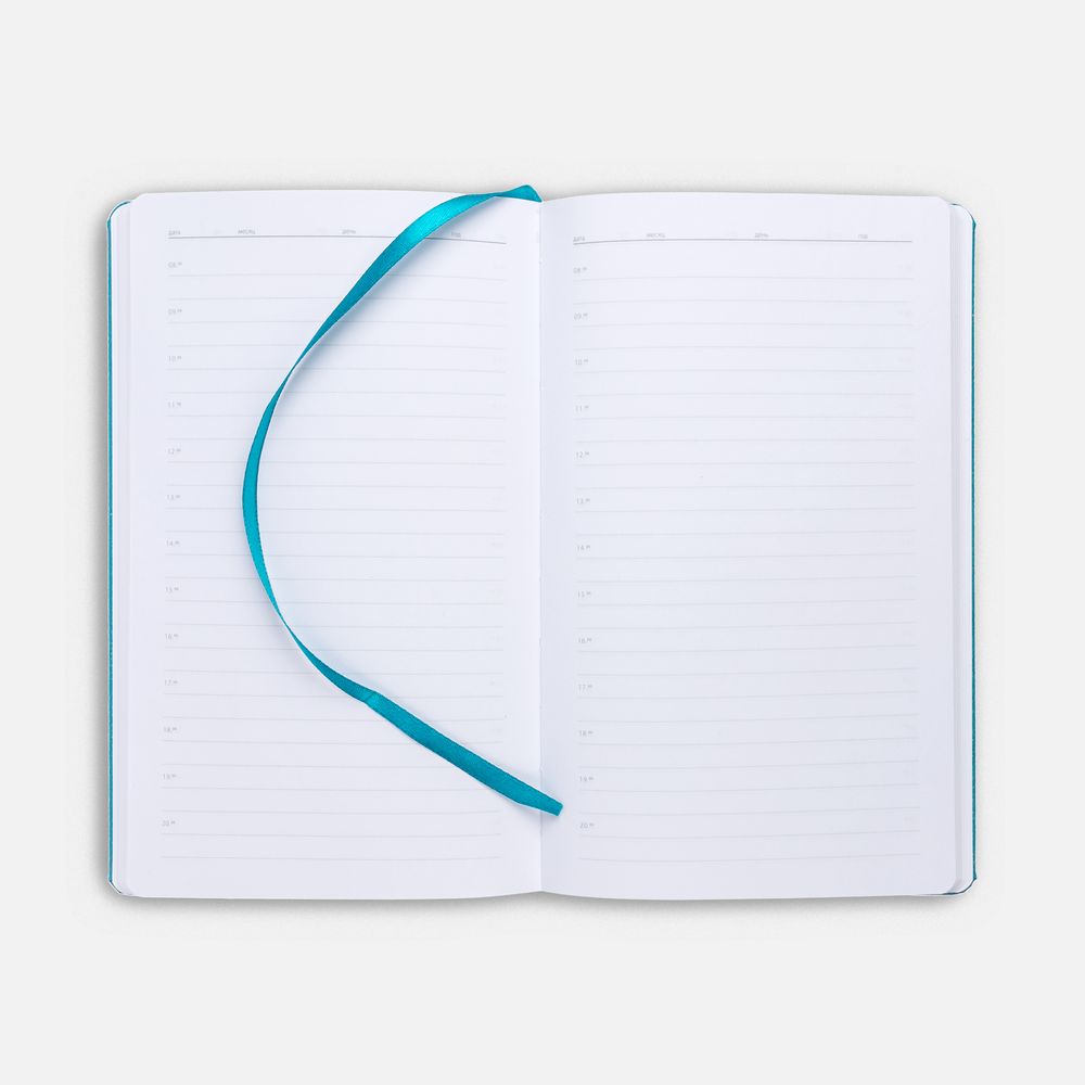 Ежедневник с твердой обложкой, выполнен из материала LaFite, цвет морской волны II, дополнен резинкой и ляссе в цвет обложки.