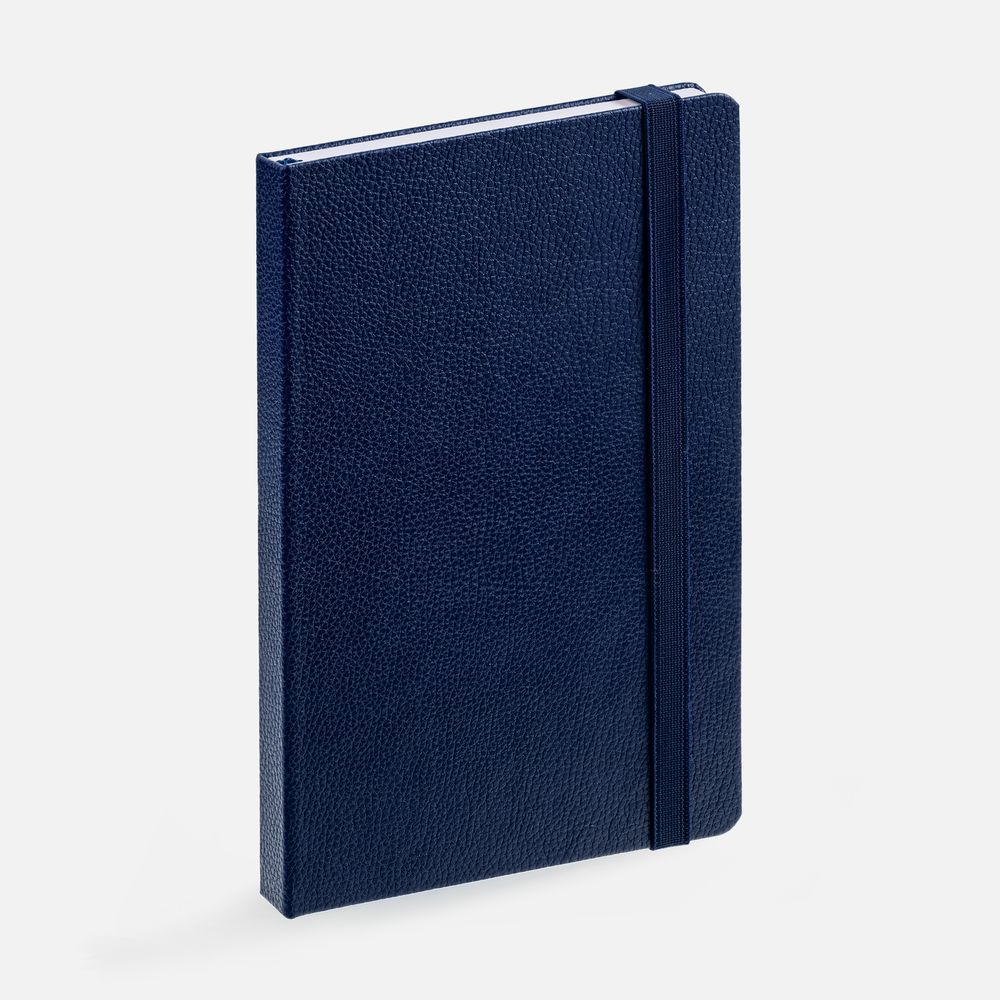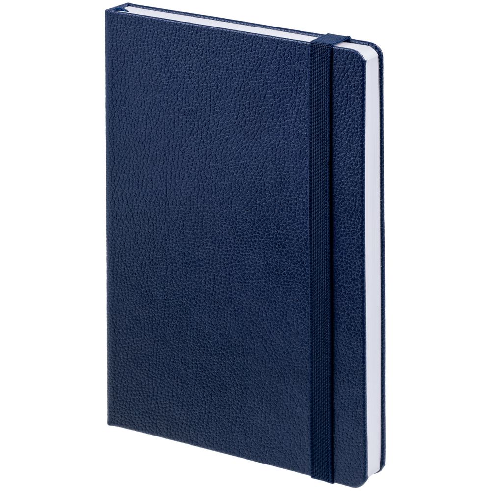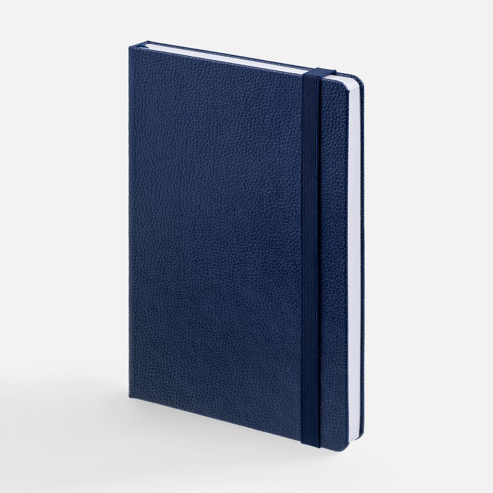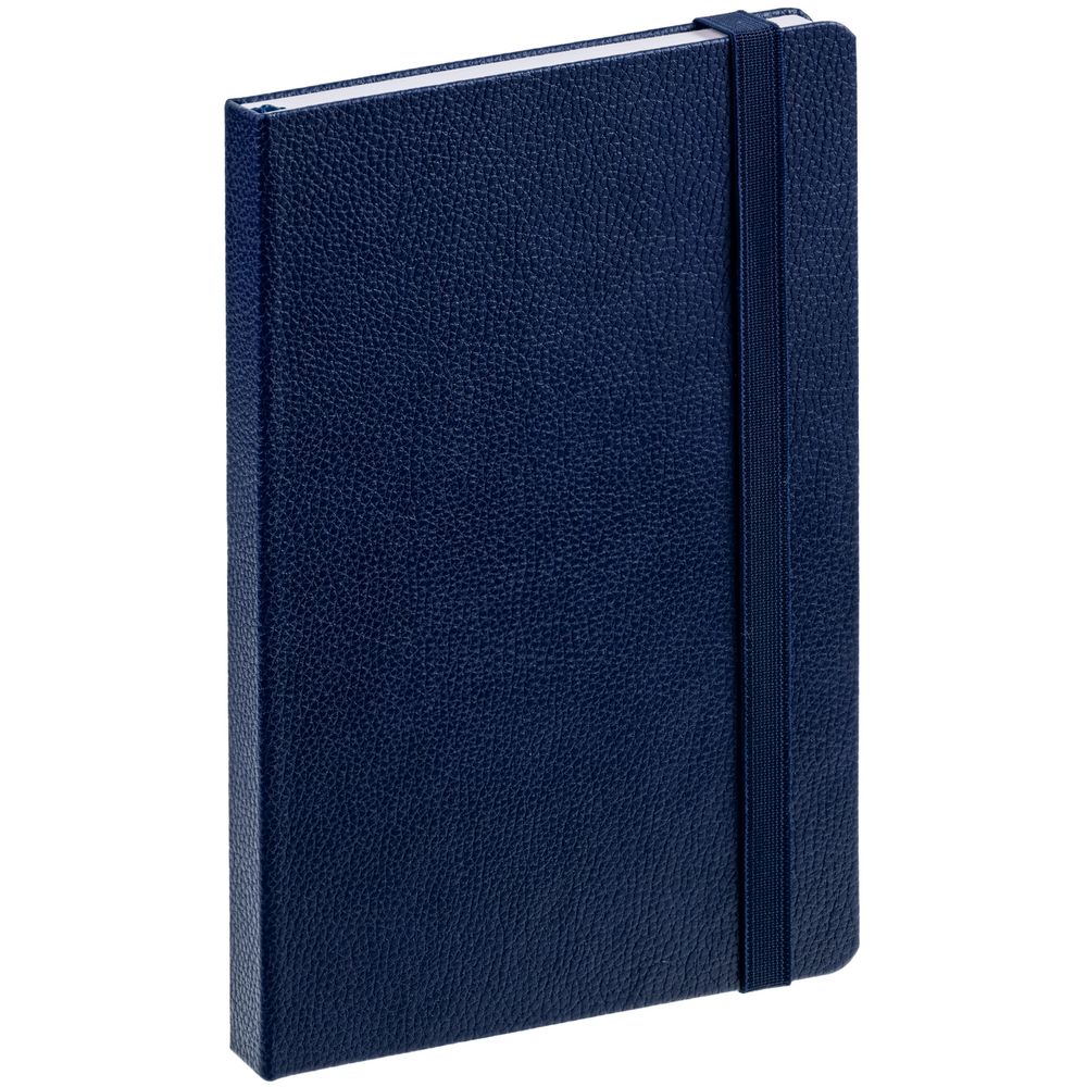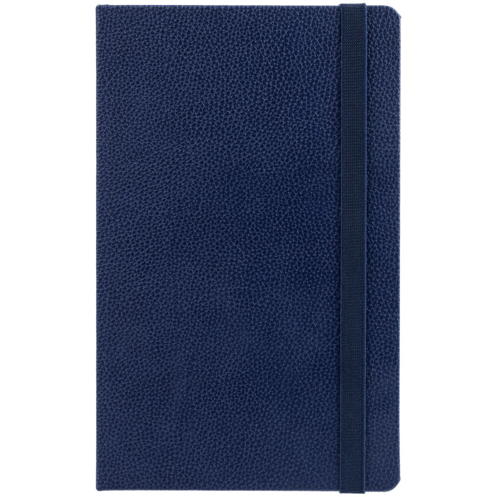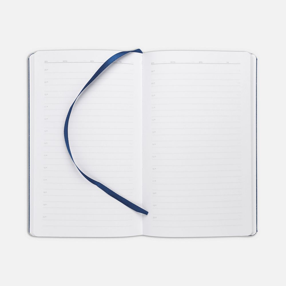 Ежедневник с твердой обложкой, выполнен из материала LaFite, темно-синий ХХ, дополнен резинкой и ляссе в цвет обложки.