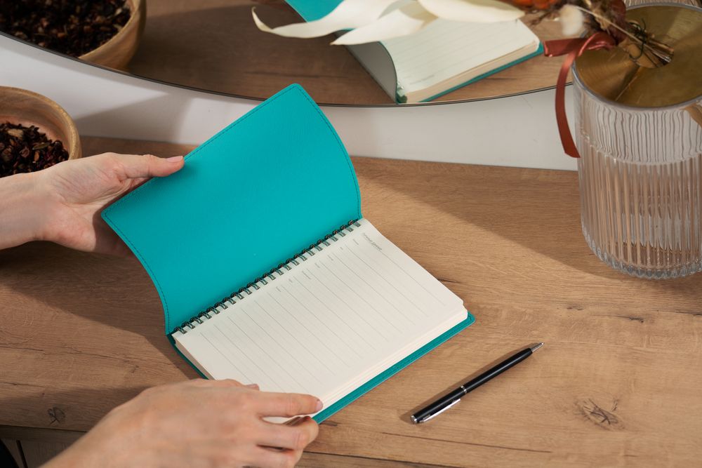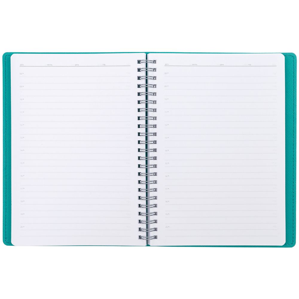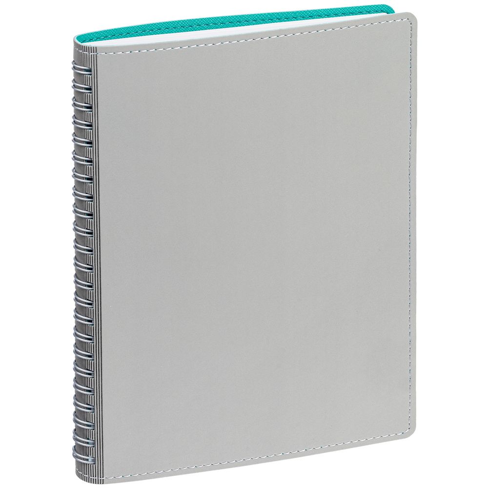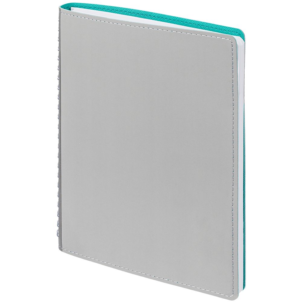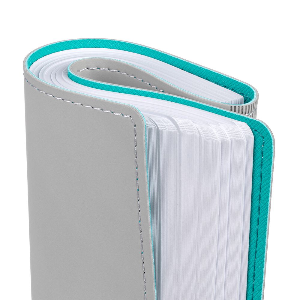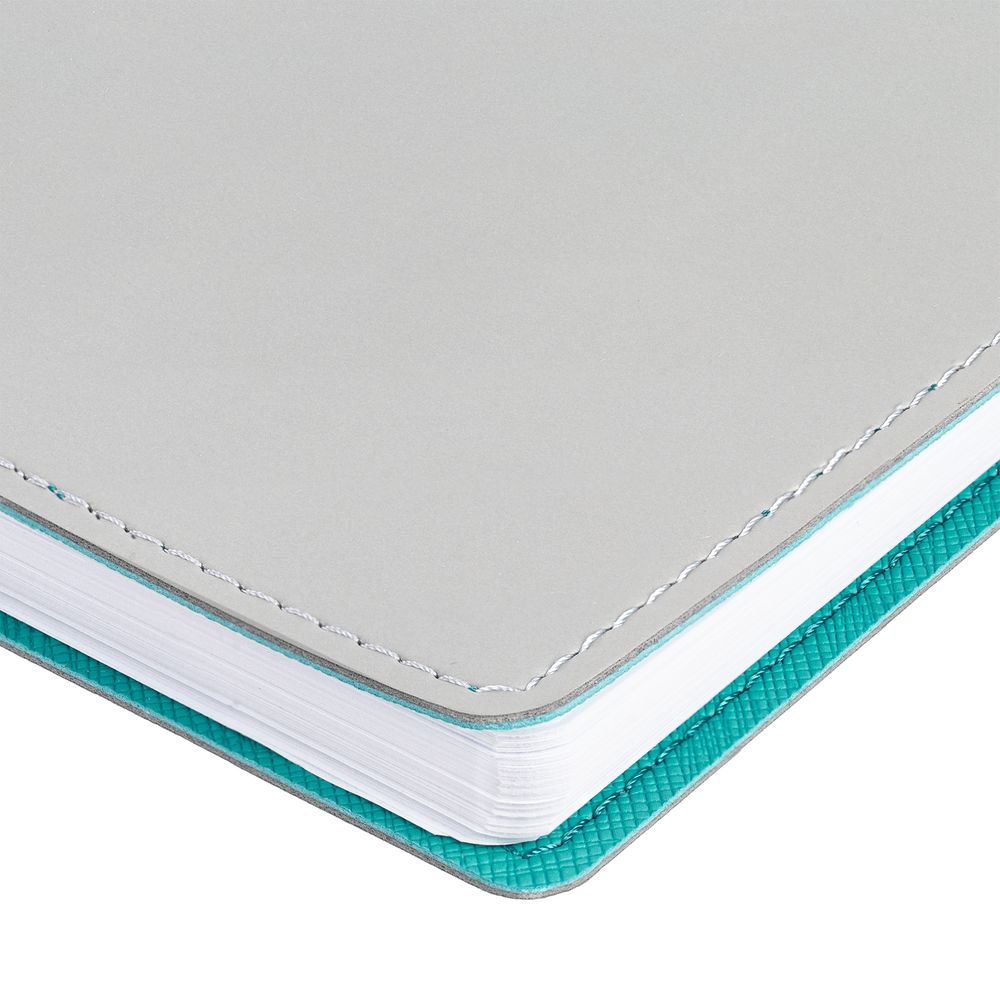 Ежедневник с гибкой обложкой, выполнен из материалов Soft Touch, серый СС и Nice Touch, цвет морской волны II.