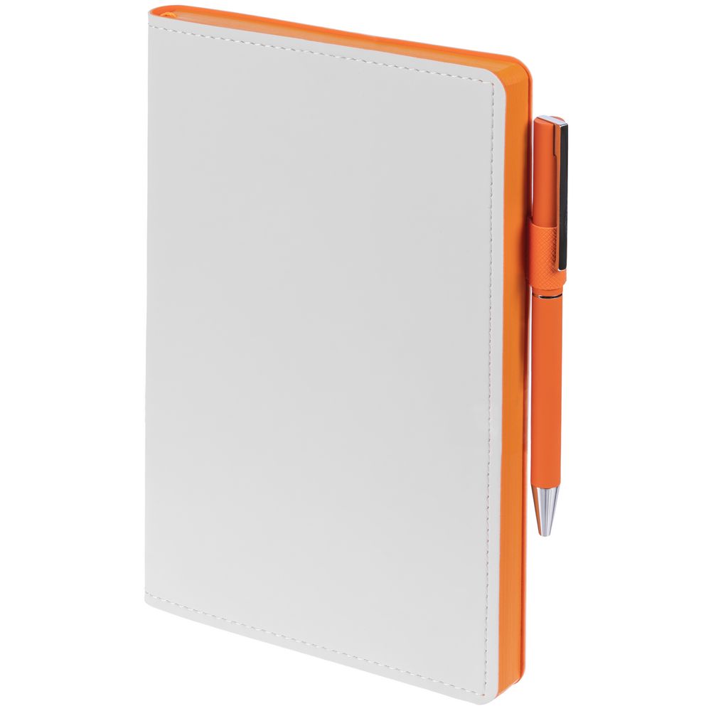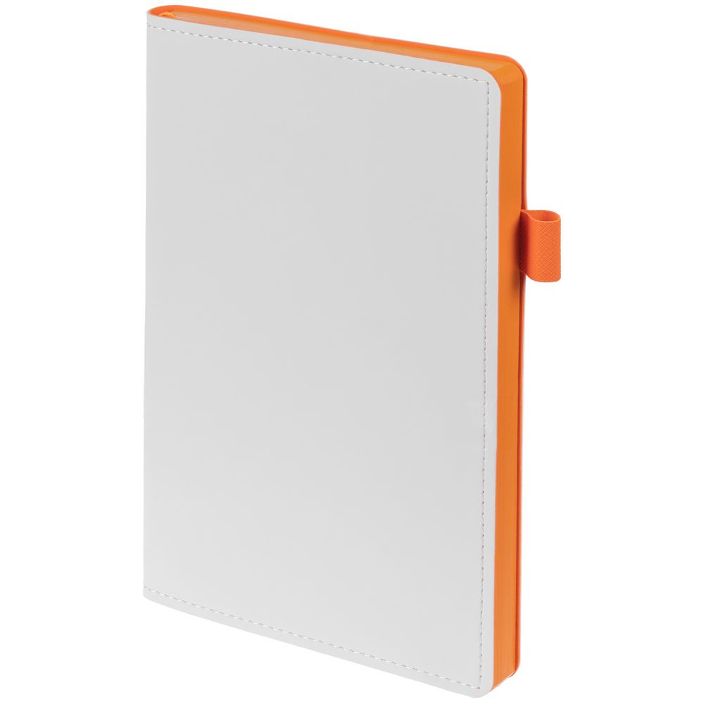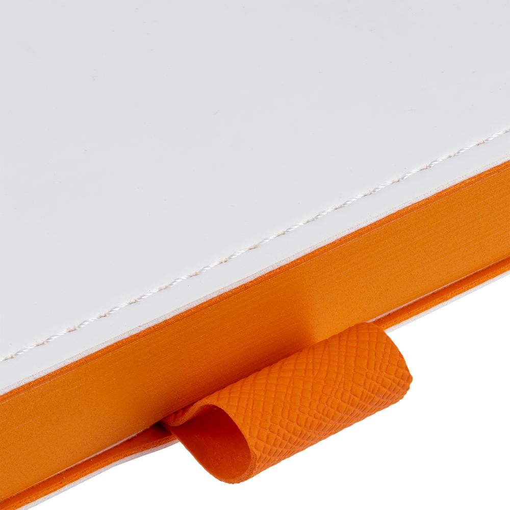 Гибкая обложка, материал обложки — Soft Touch, белый BB и Latte, оранжевый ОО; материал петли для ручки — Nice Touch, оранжевый ОО.