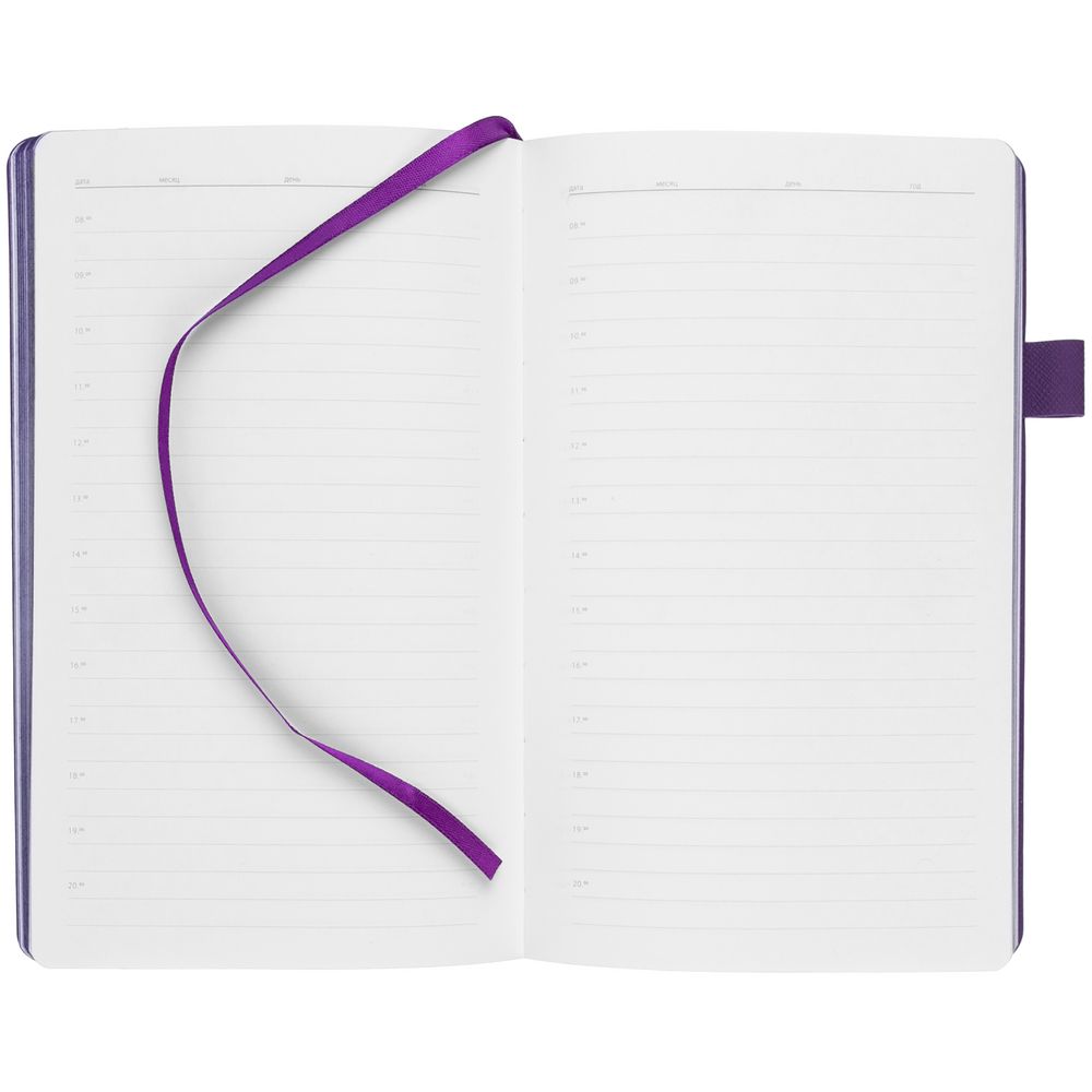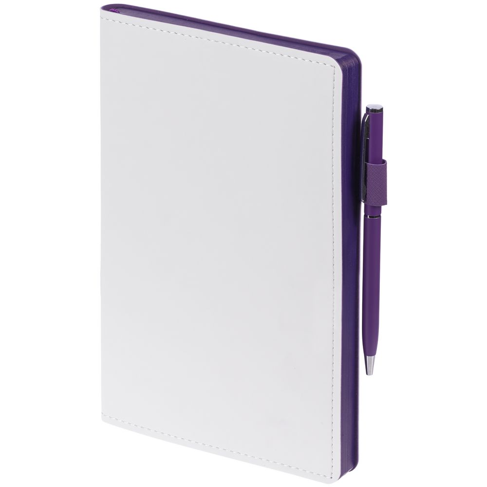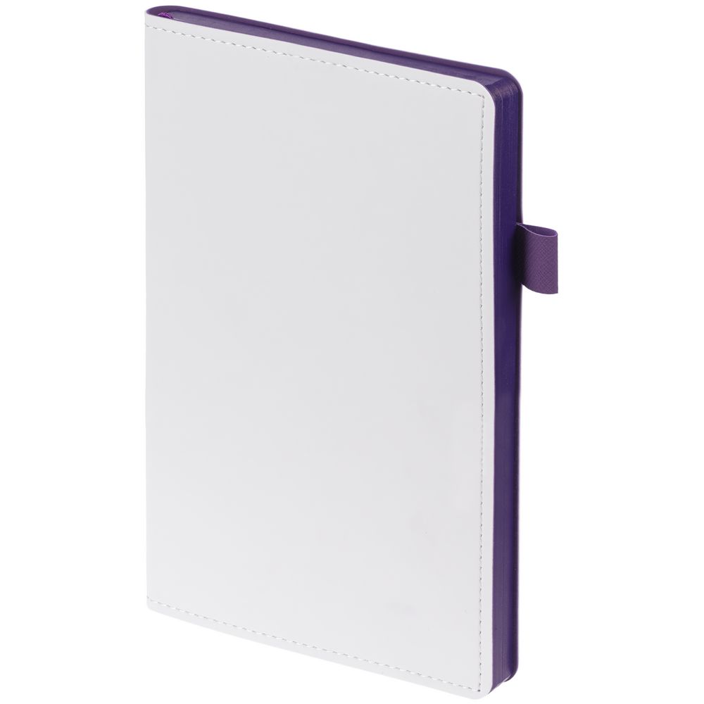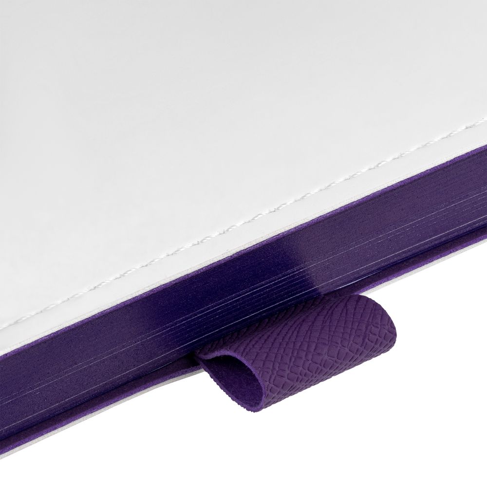 Гибкая обложка, материал обложки — Soft Touch, белый BB и Latte, фиолетовый UU; материал петли для ручки — Nice Touch, фиолетовый UU.