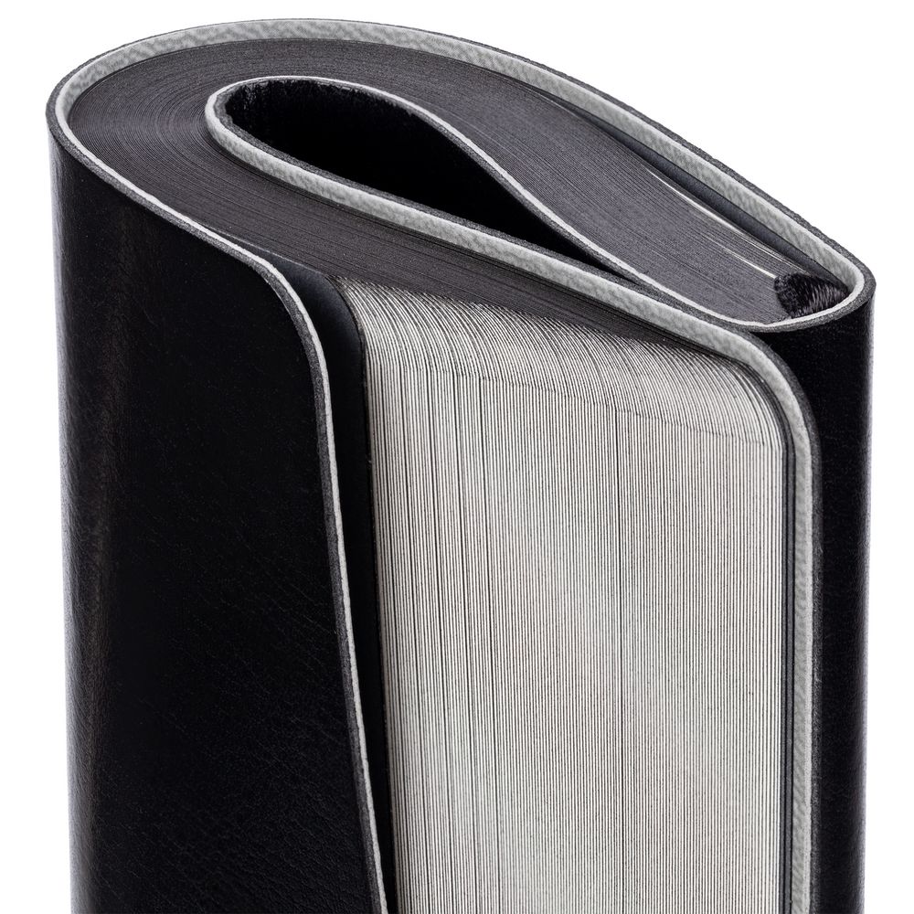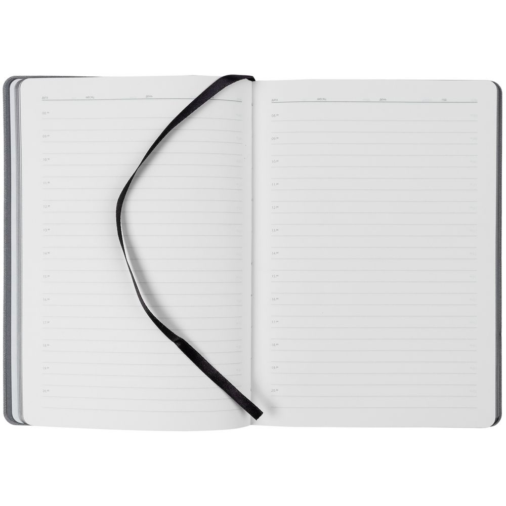 Ежедневник с гибкой обложкой, выполнен из материала Nebraska, черный АА и Latte. серый СС, дополнен ляссе в цвет обложки.