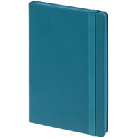 Блокнот в твердой обложке, выполнен из материала Soft Touch, черный АА, дополнен резинкой и ляссе в цвет обложки.