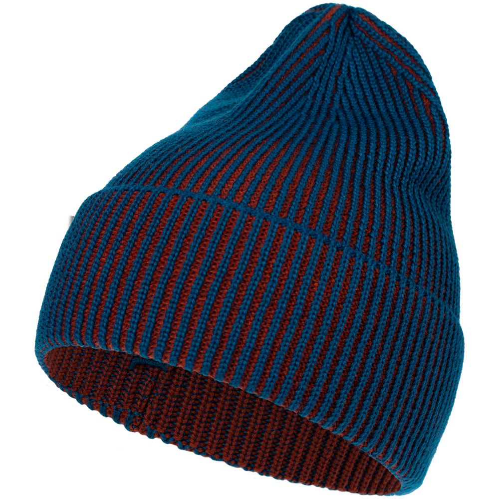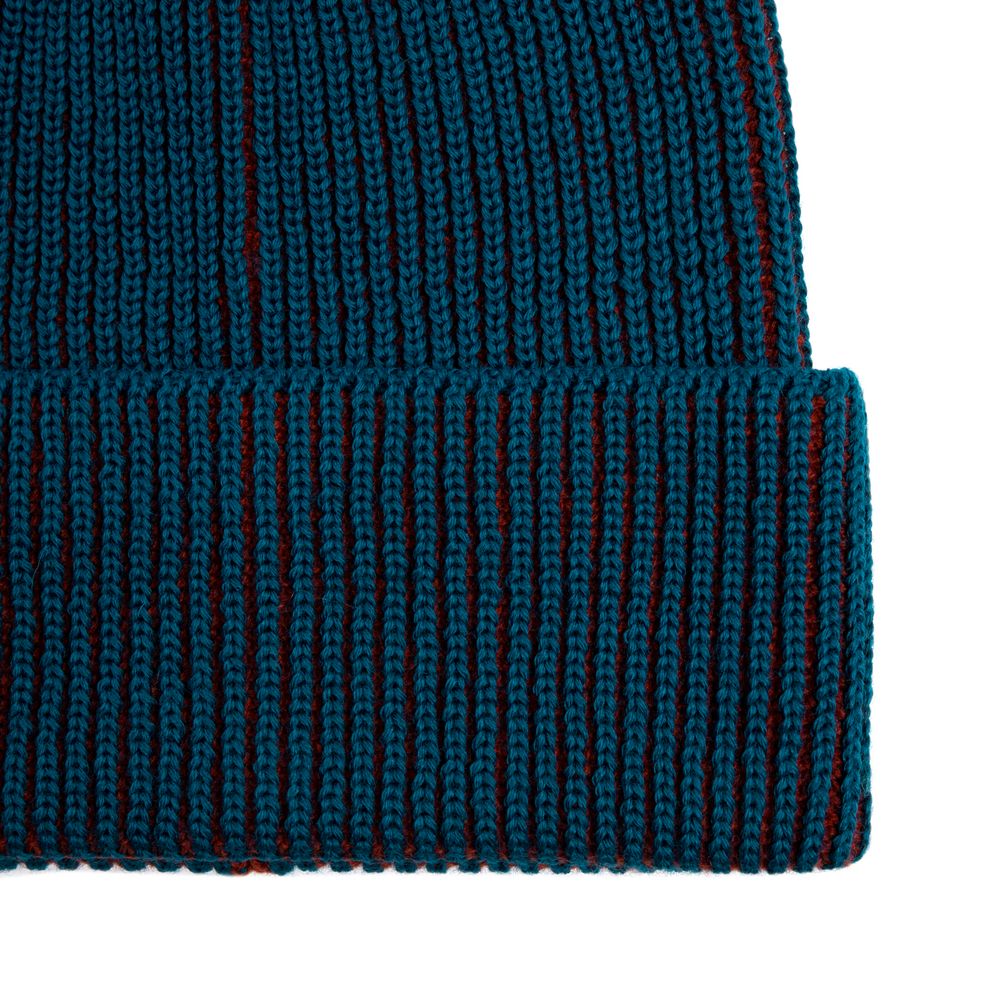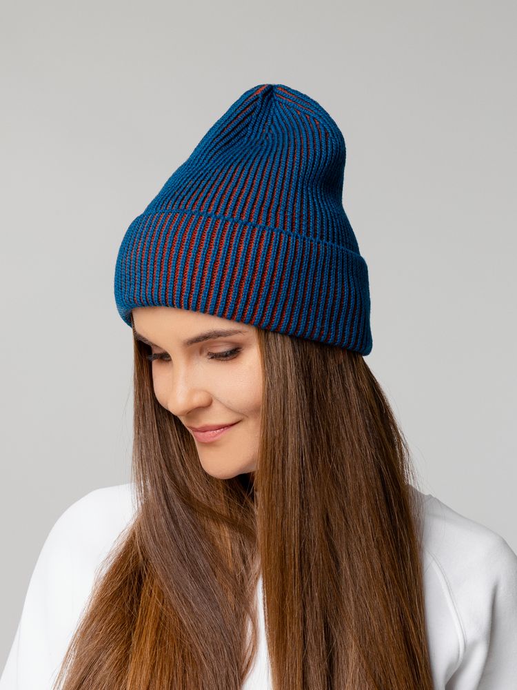Удлиненная двухцветная шапка из полушерстяной пряжи идеально подходит для создания яркого и современного городского образа и будет удачно смотреться с верхней одеждой разных стилей.