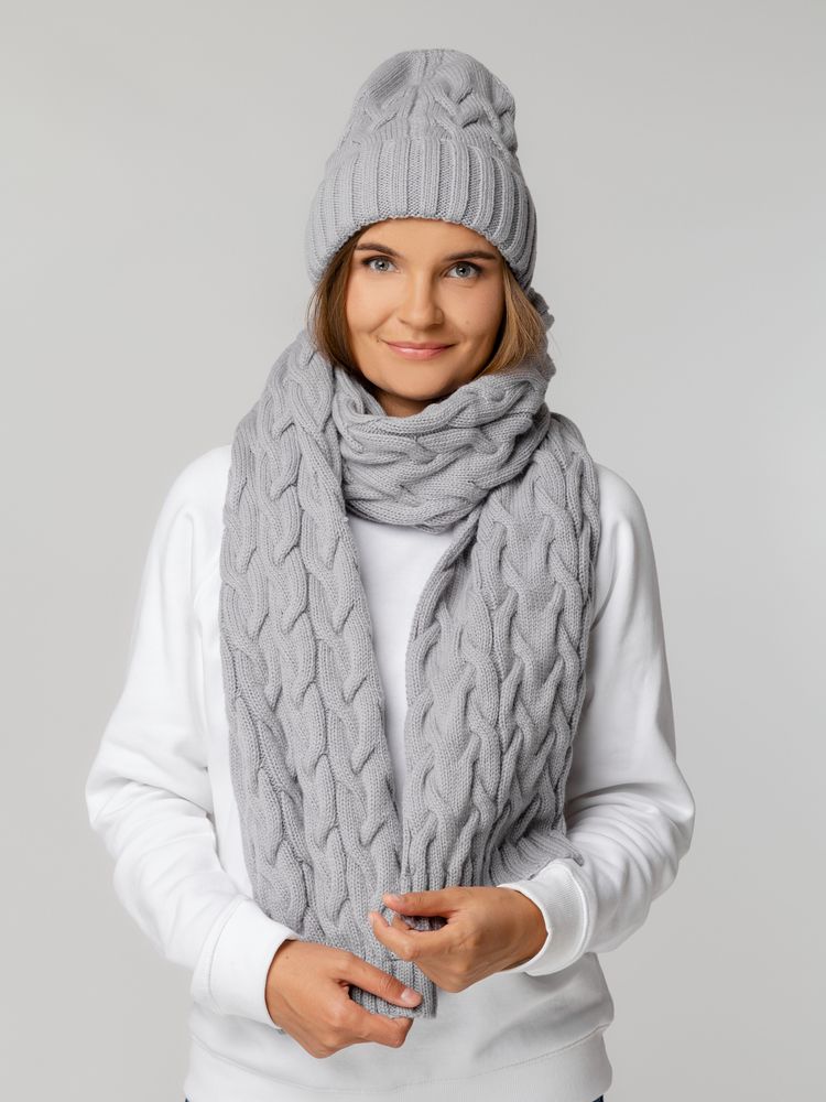 Мягкая удлиненная женская шапка объемной вязки Loren — уютный вариант для создания современного городского образа.