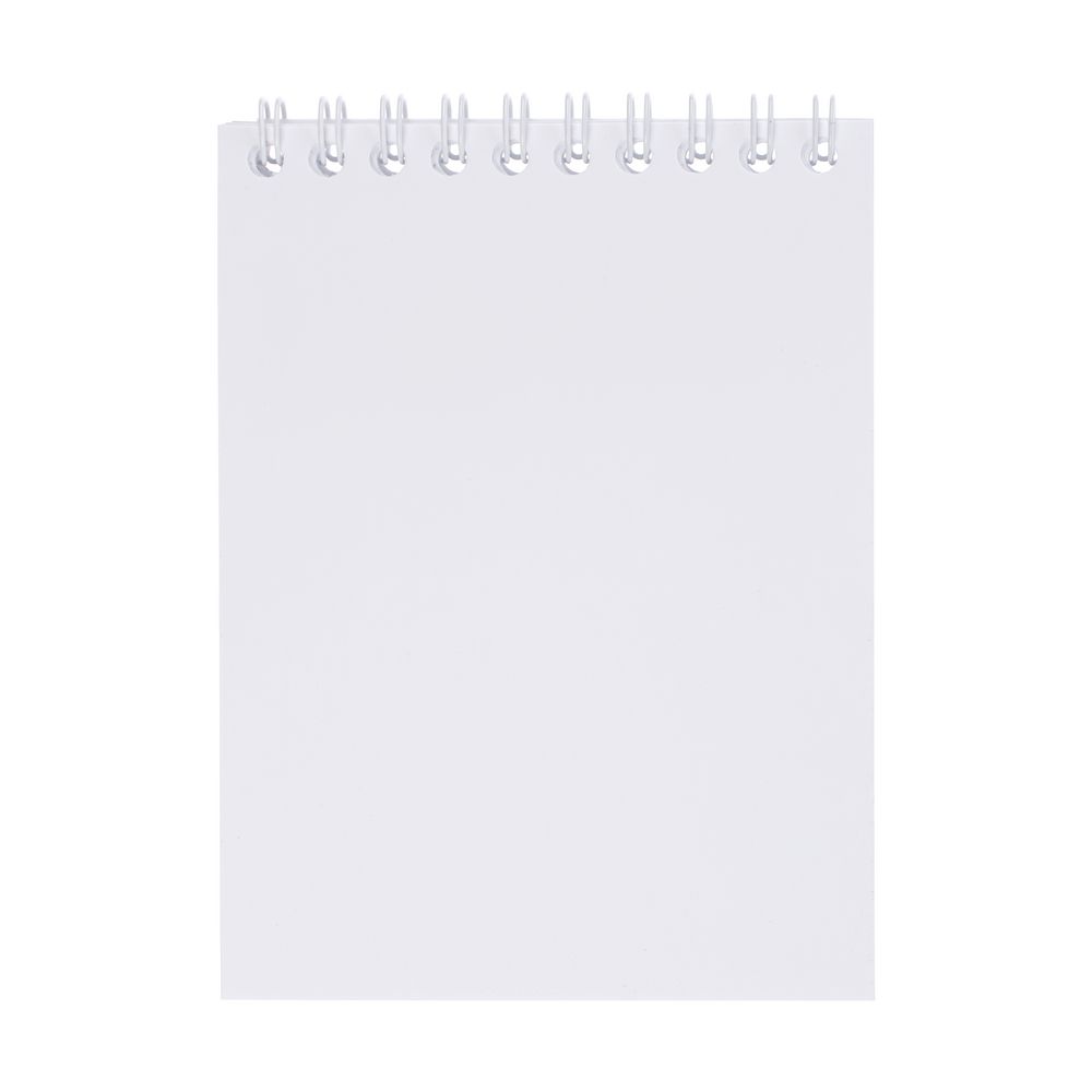 Блокнот с обложкой из глянцевого белого пластика толщиной 0,20 мм. Подложка изготовлена из картона плотностью 300 г/м².