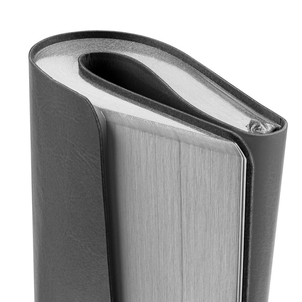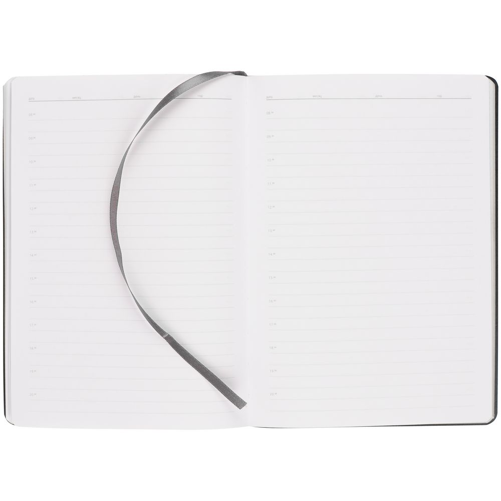 Ежедневник с гибкой обложкой, выполнен из материала Nebraska Metal, серебро DD, дополнен ляссе в цвет обложки.