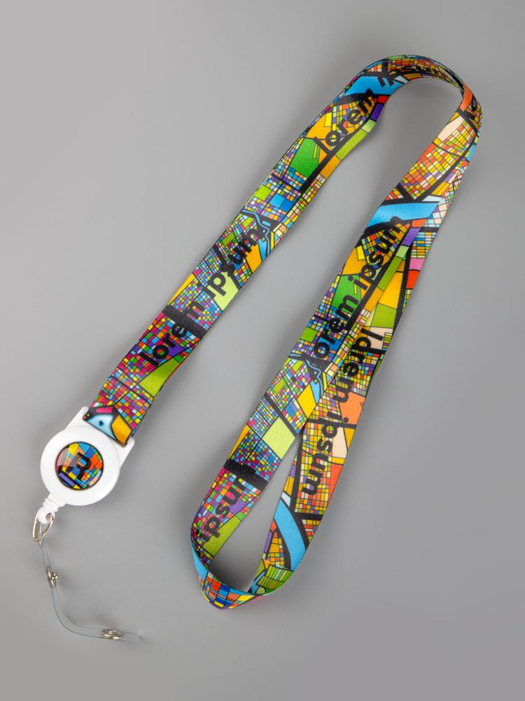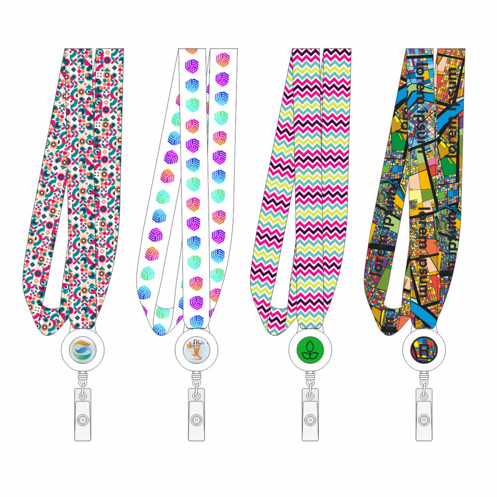 Полноцветная сублимационная печать на ленте с двух сторон и наклейка под смолой на ретракторе входят в стоимость изделия.Приложите к заказу оригинал-макет, выполненный в конструкторе.