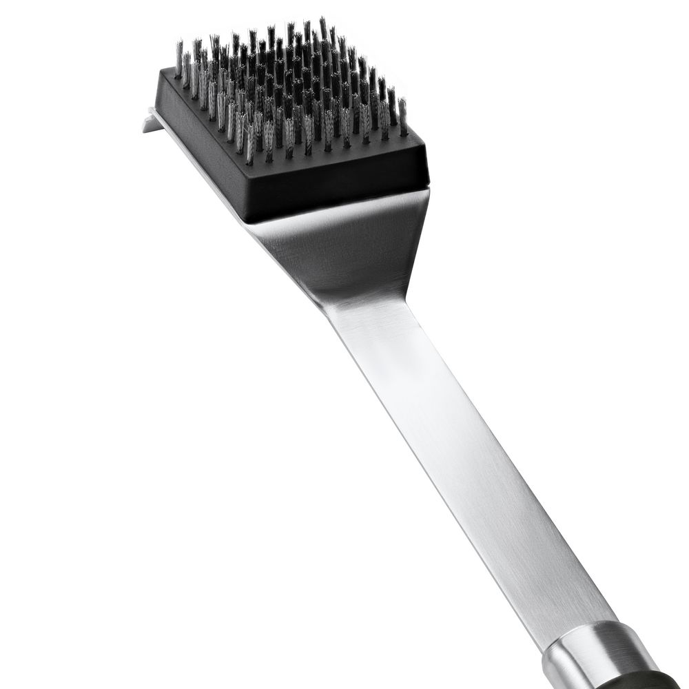 Щетка Ribeye благодаря жесткой металлической щетине быстро и эффективно очистит решетку для гриля от остатков пищи и нагара. Имеет оптимальную длину для безопасного использования, рукоятку с противоскользящим покрытием и петлю для подвешивания.