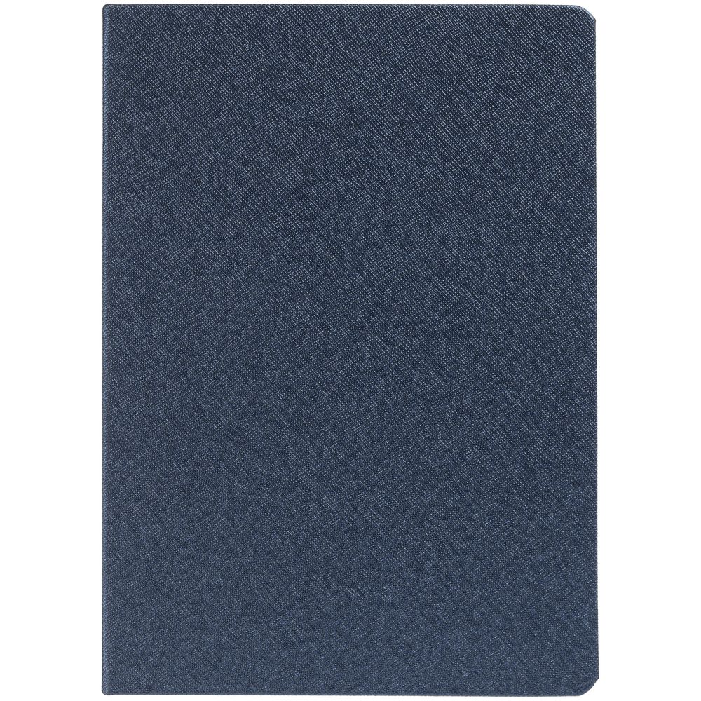 Ежедневник с твердой обложкой и серебристым обрезом, выполнен из материала Saffian, синий НН, дополнен ляссе в цвет обложки.