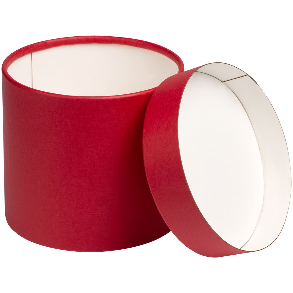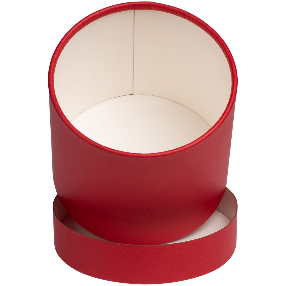 Цилиндрическая компактная подарочная коробка, изготовленная из двухслойного картона и дизайнерской бумаги.