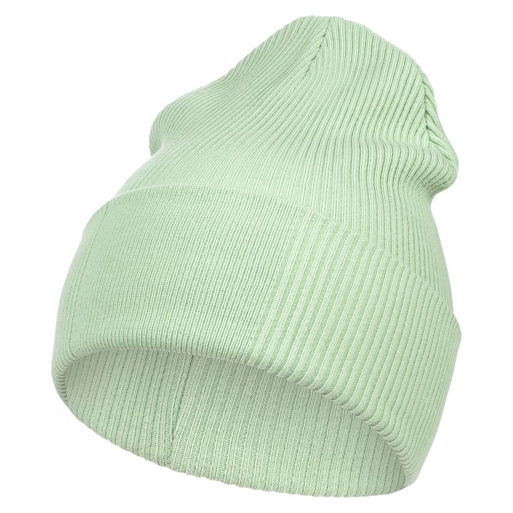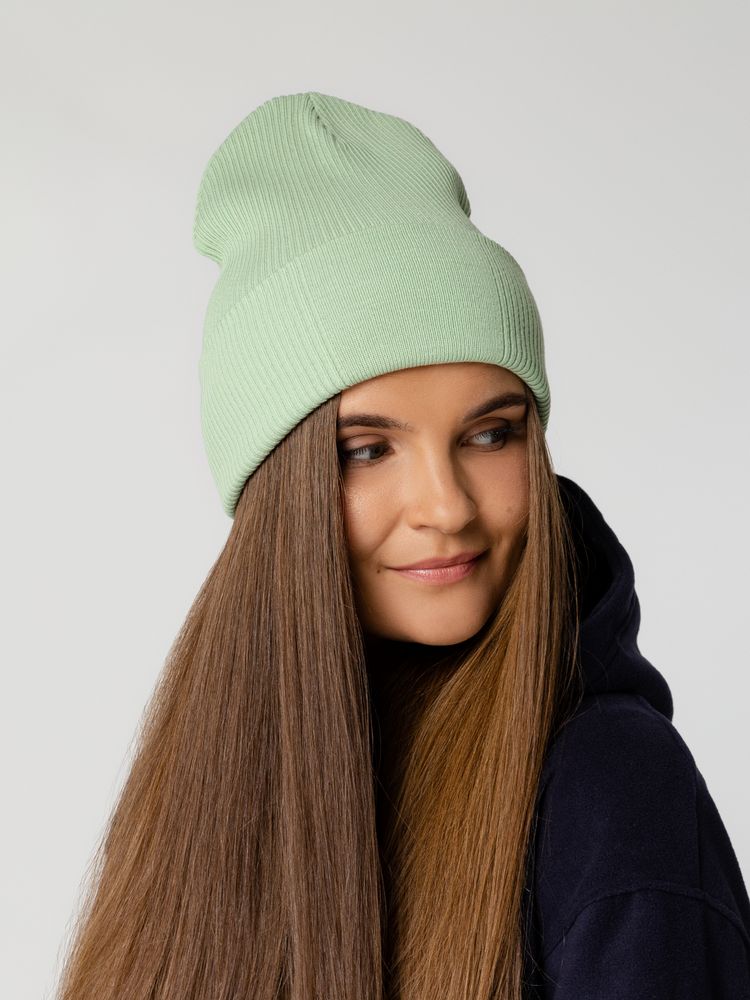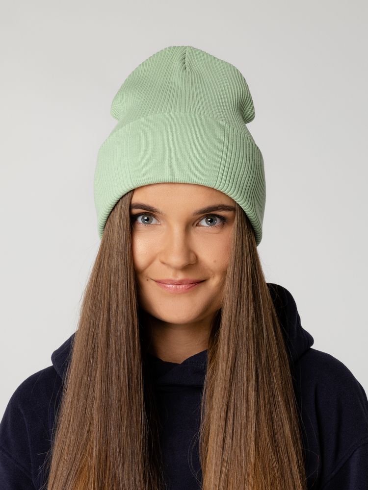 Двухслойная шапка фактурной вязки с отворотом и специальной более гладкой областью под вышивку.
