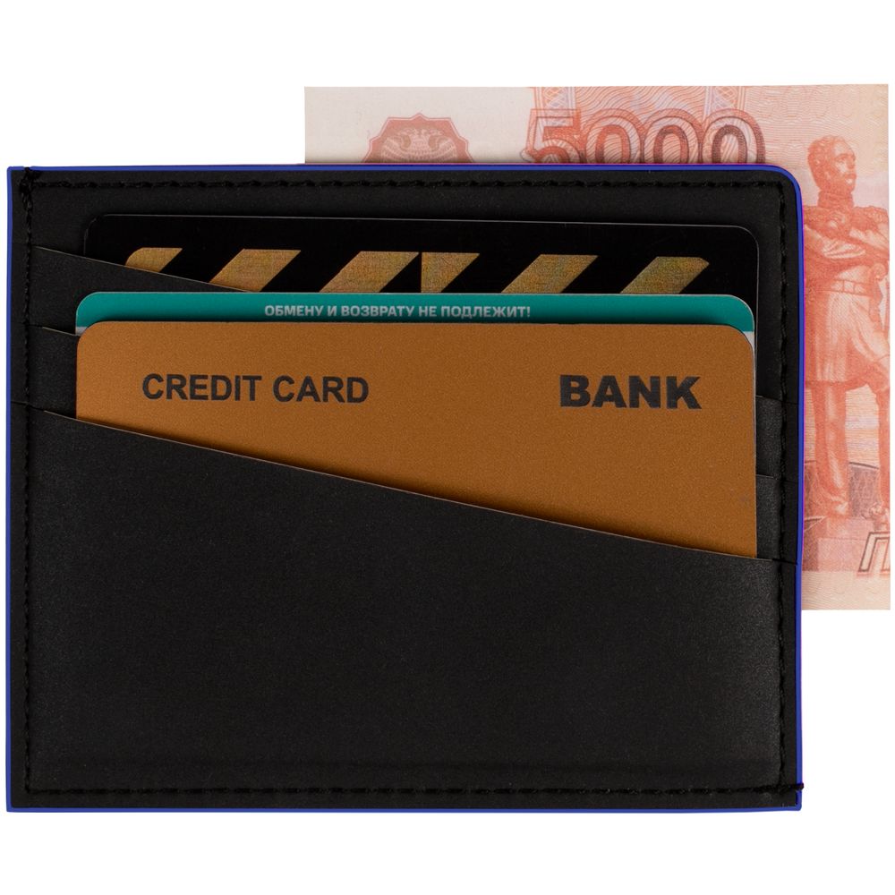 Серия личных аксессуаров Multimo — удачный вариант функционального персонального подарка. Приятная на ощупь искусственная кожа, продуманный дизайн, лаконичная контрастная отделка и выигрышная цветовая гамма.Чехол выполнен из материала Soft Touch Pearl, черный АА, дополнен окрашенным срезом края и внутренним карманом из цветного картона. Имеет 4 отделения для кредитных карт и 1 отделение для купюр.