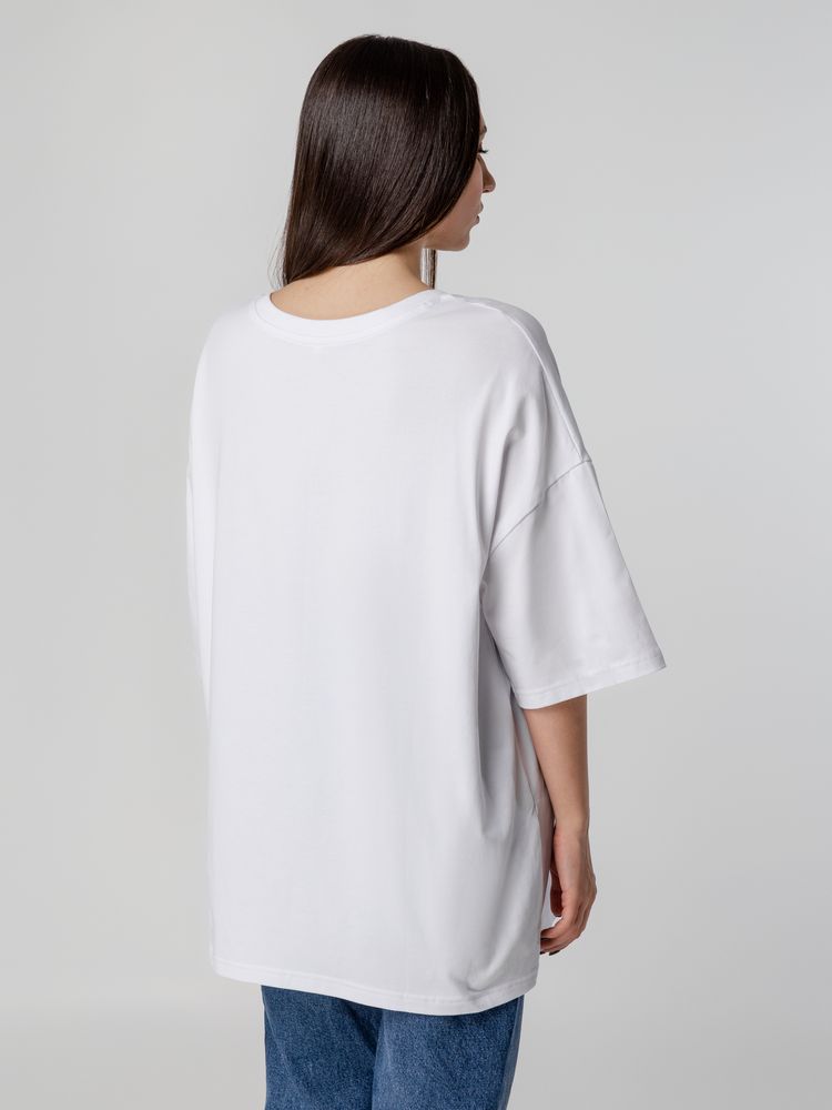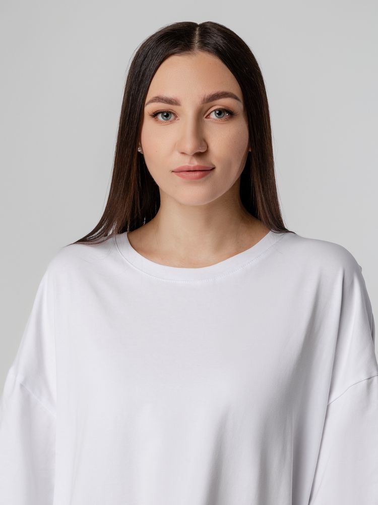 Объемная кроеная футболка с удлиненным рукавом из гребенного хлопка с эластаном не стесняет движений и создает модный расслабленный силуэт.