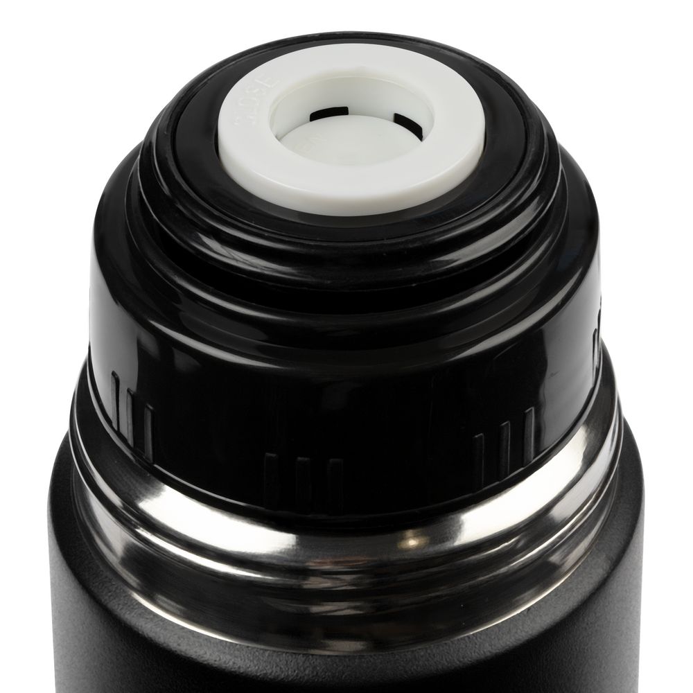 Стильный термос с клапаном-кнопкой и крышкой-кружкой.
