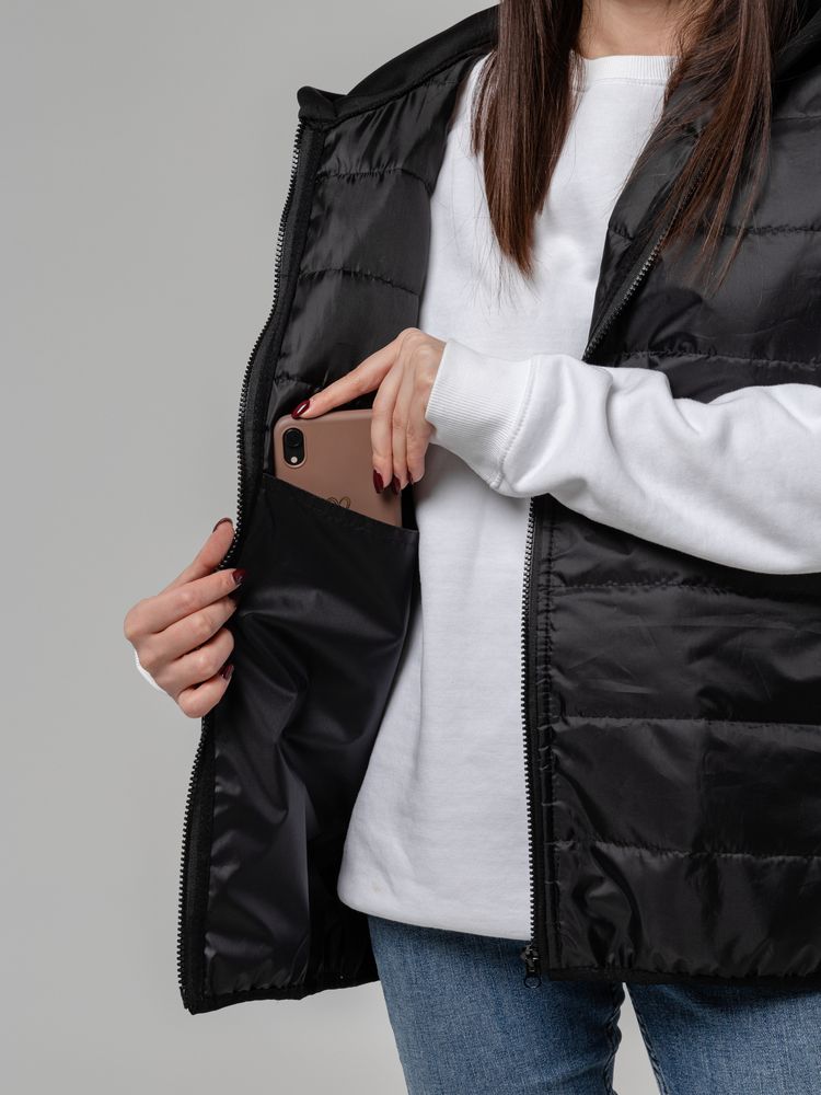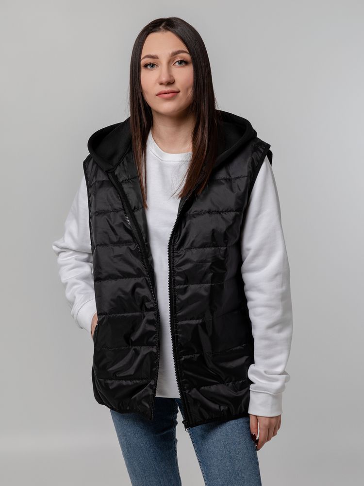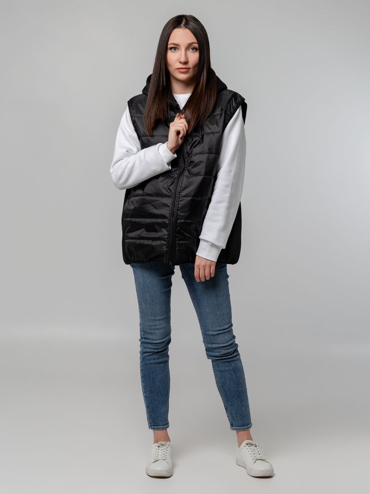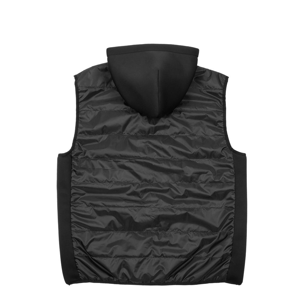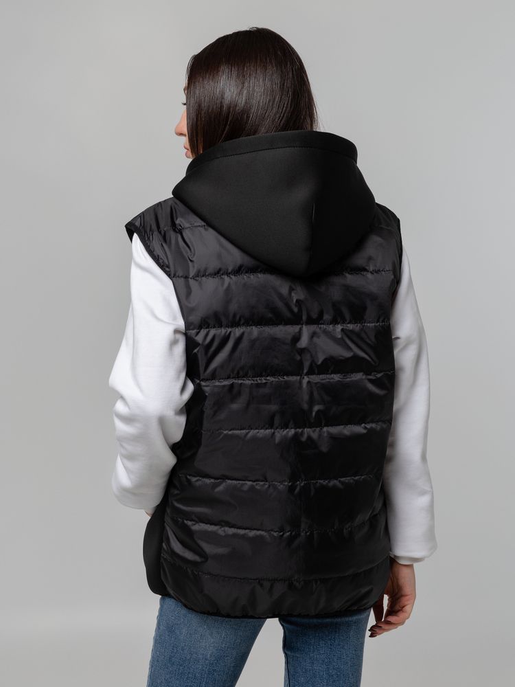 Утепленный жилет с капюшоном и боковыми вставками из неопрена стильно выглядит, защищает от холода и ветра, а также удачно садится на разные типы фигуры.