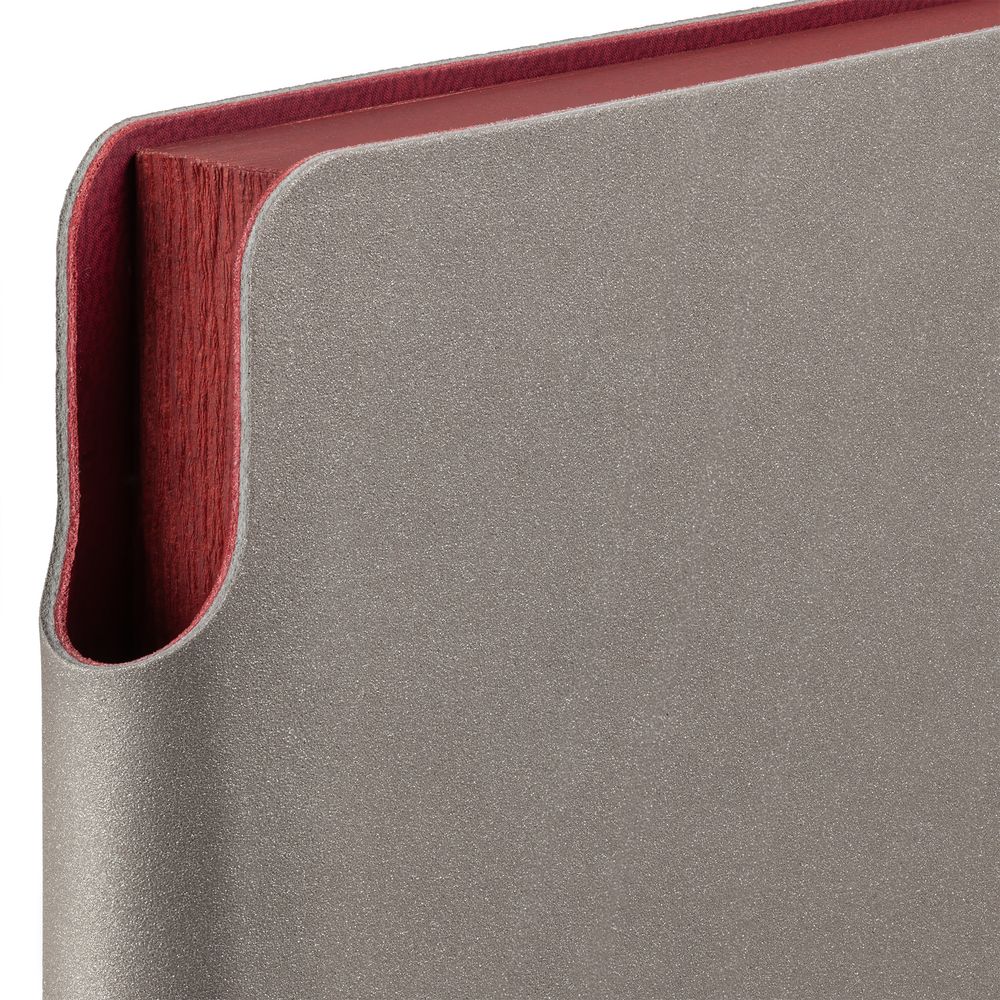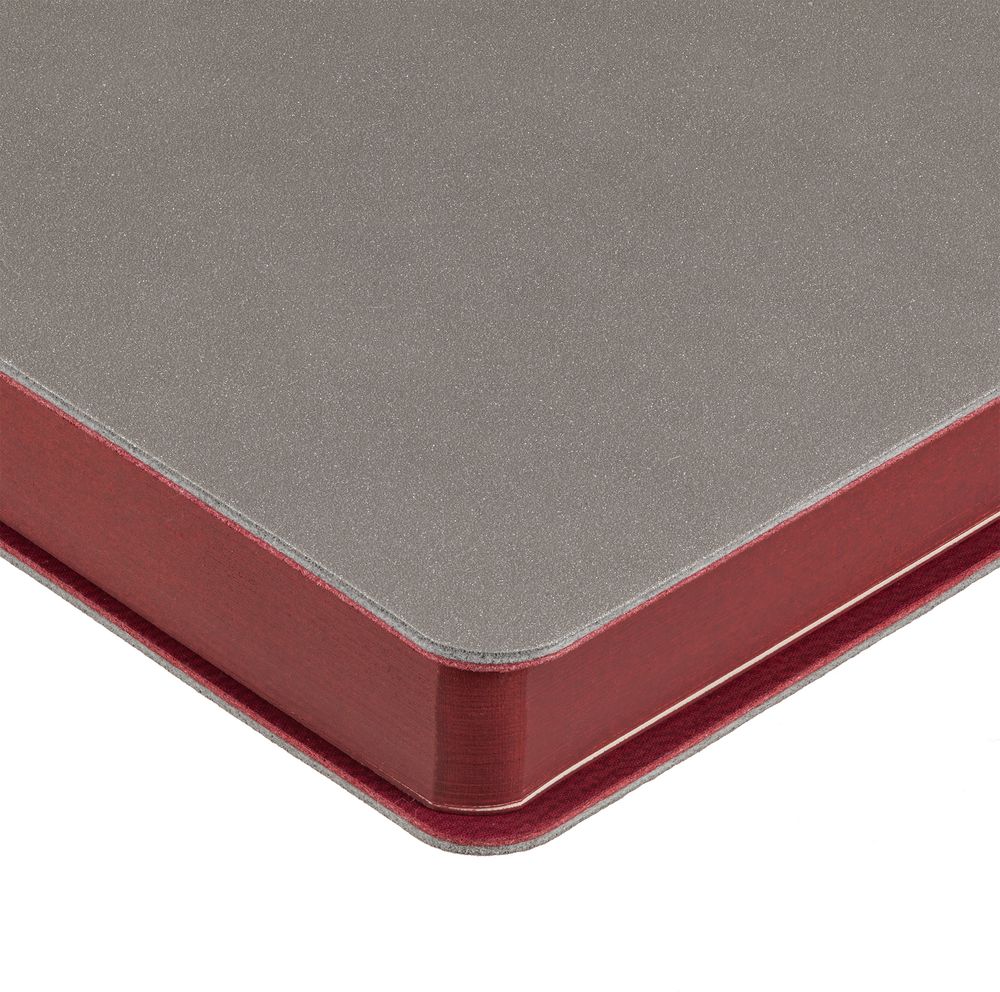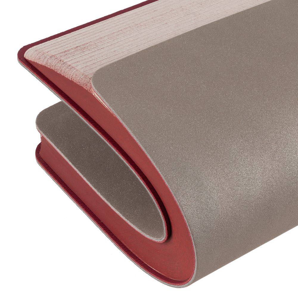 Гибкая обложка выполнена из материала Velour Melange, серый СС и Latte, винный SS (внутренняя часть обложки). Внутри корешка — специальное место для крепления ручки размером до 15х0,9 см.
