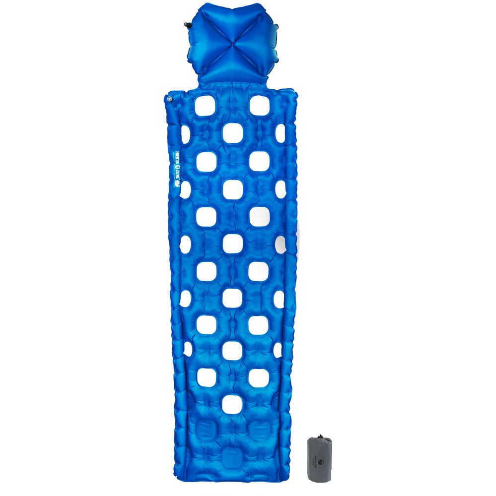 Ультралегкий туристический коврик с анатомическим дизайном и подушкой 10 см предназначен для использования внутри или снаружи спального мешка. Экономит время и энергию за счет быстрой системы надува. Компактно складывается до размера алюминиевой банки 360 мл.