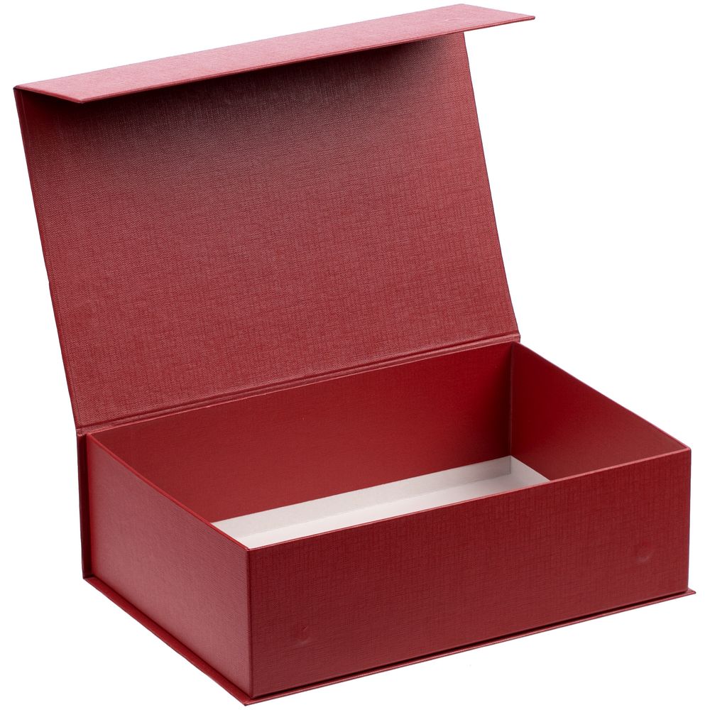Коробка выполнена из переплетного картона, кашированного дизайнерской бумагой Classy Covers. На крышке выполнено тиснение голографической фольгой. Закрывается на магнит.