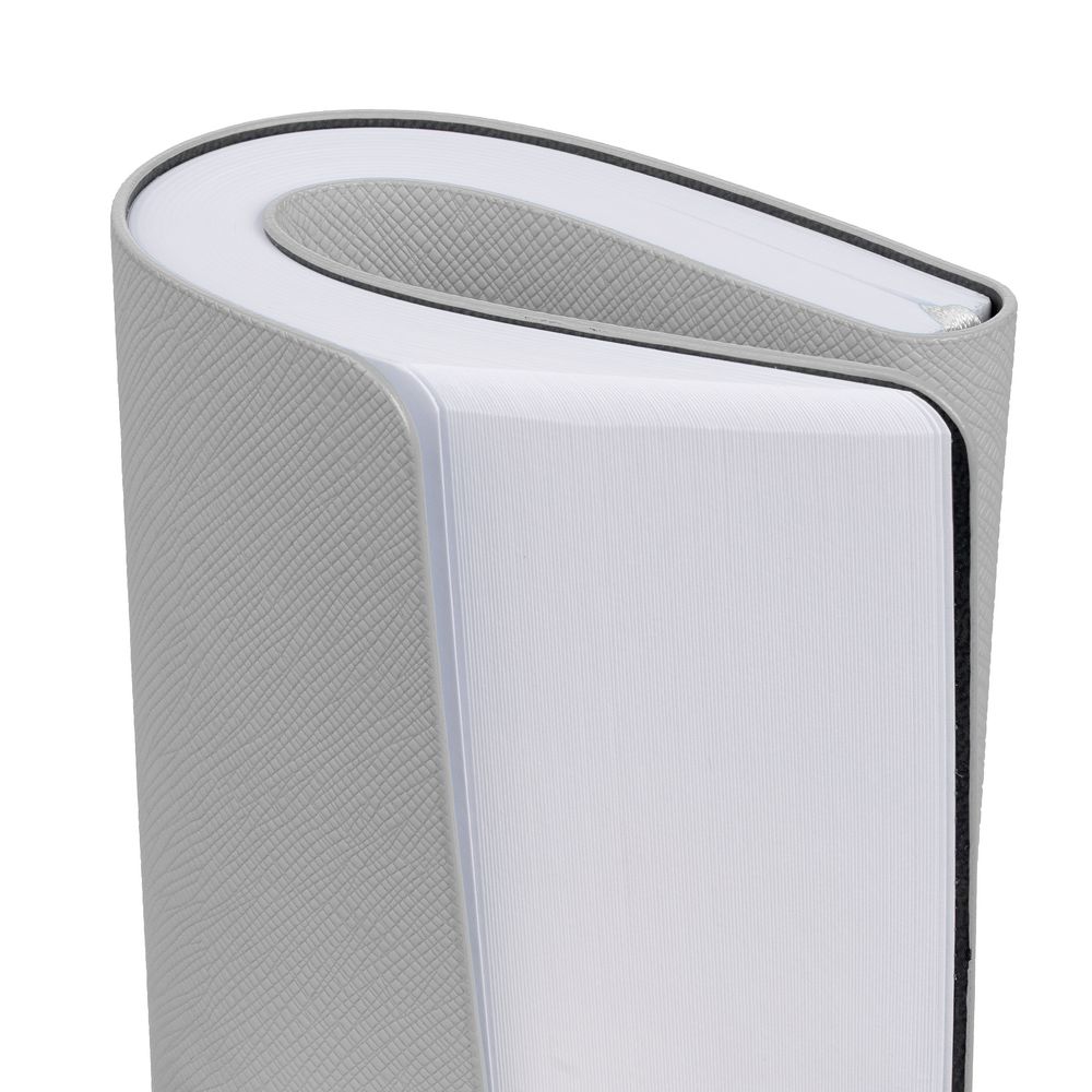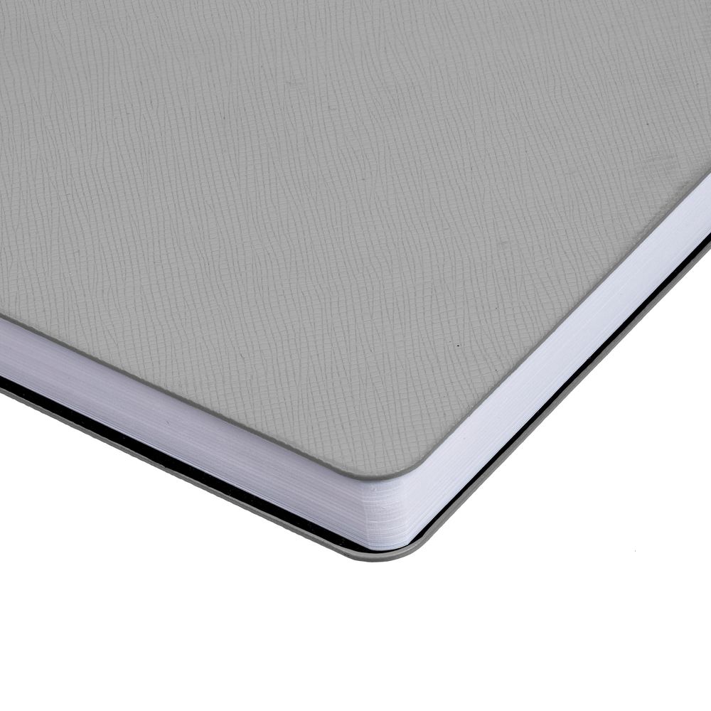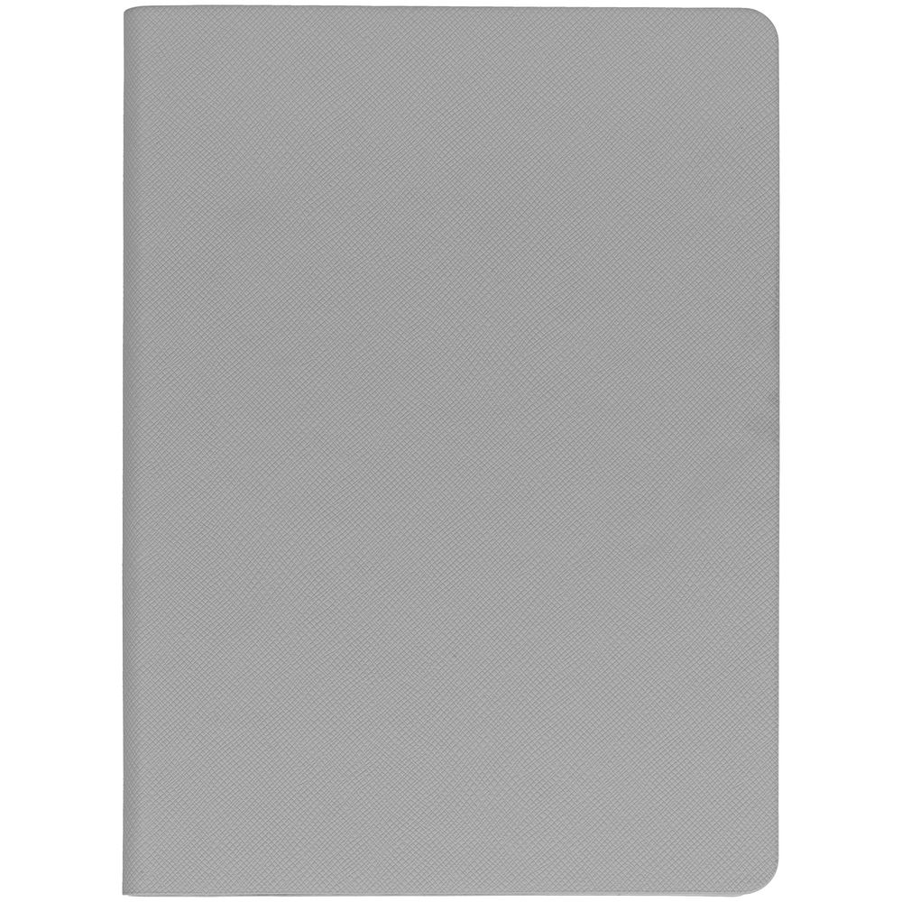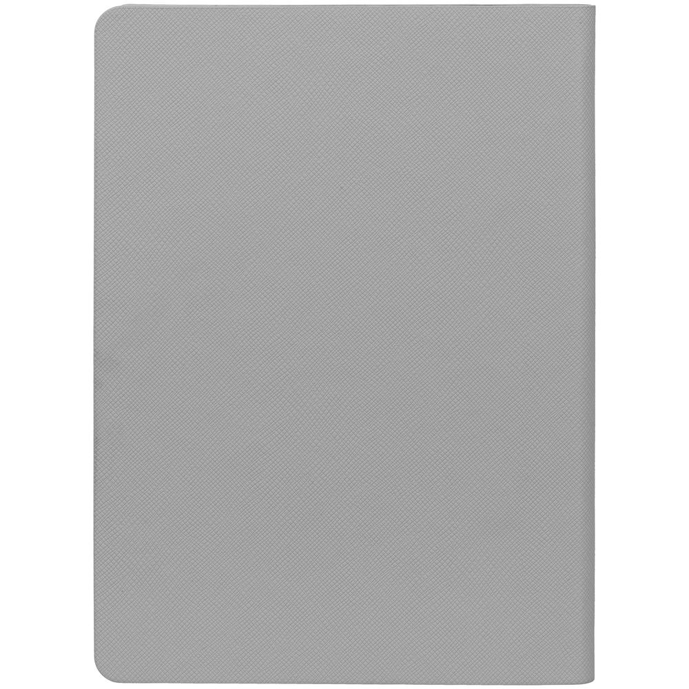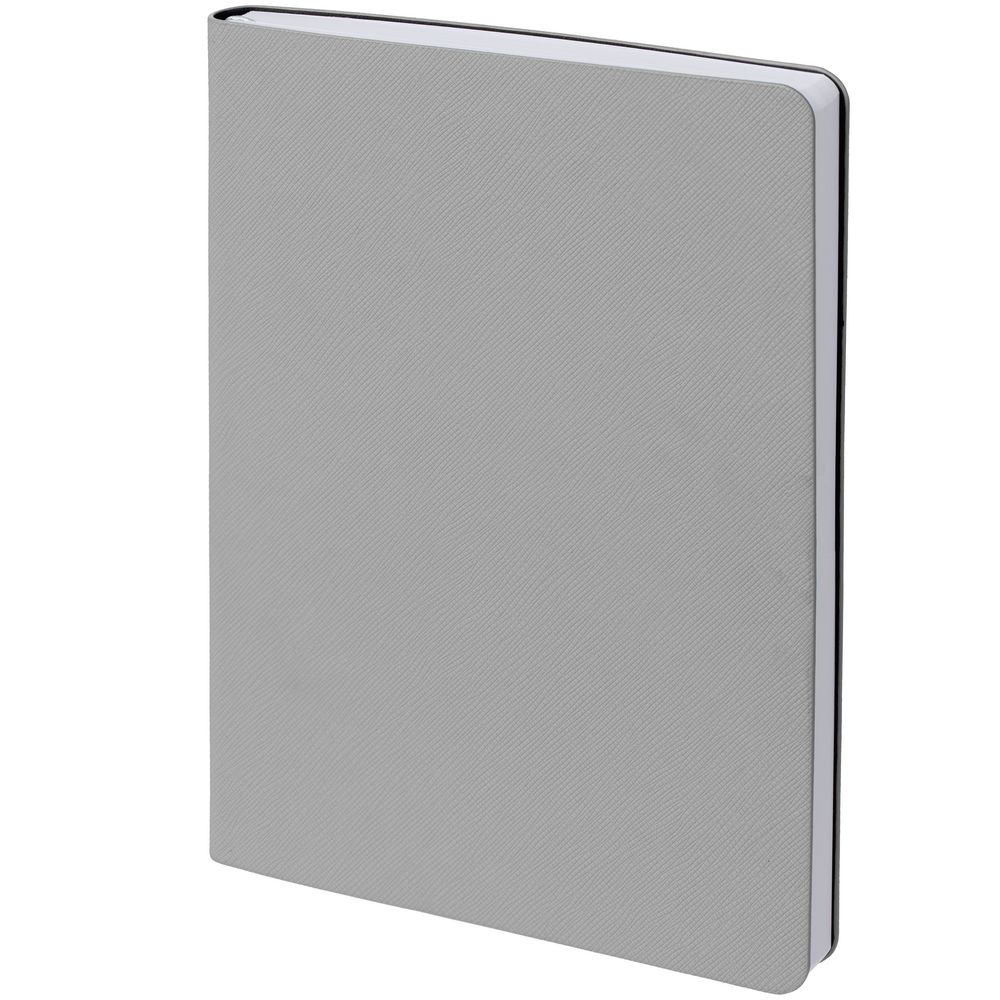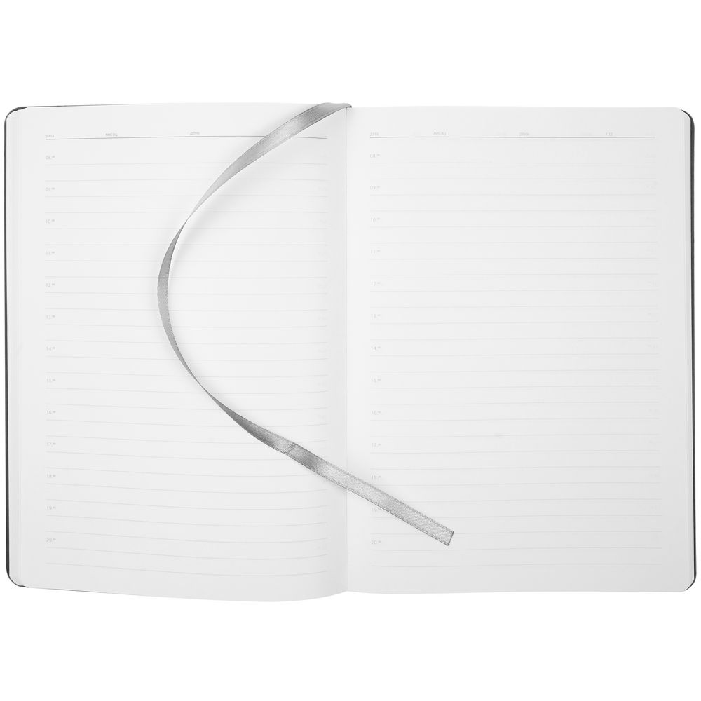 Ежедневник с гибкой обложкой, выполнен из материалов Nice Touch, серый СС и Bilberry, темно-синий ХХ (внутренний материал), дополнен ляссе в цвет обложки.