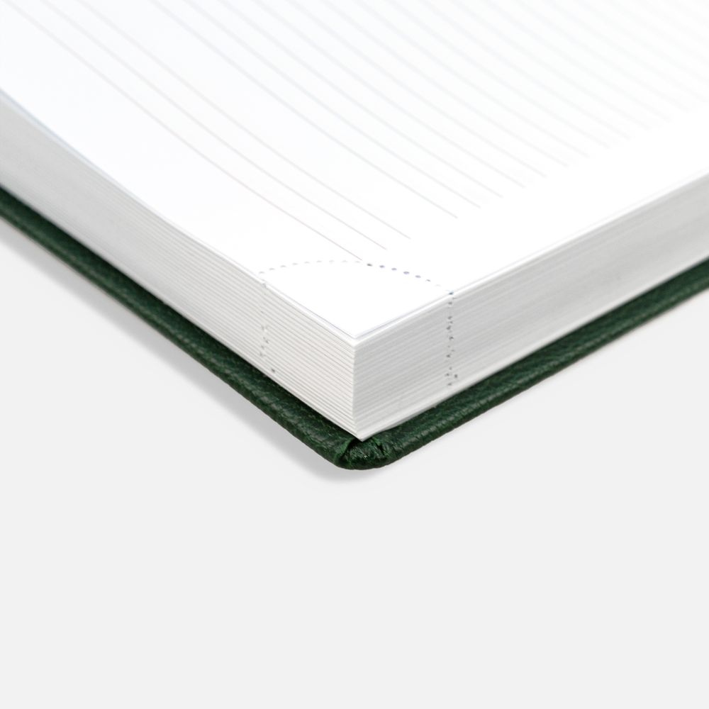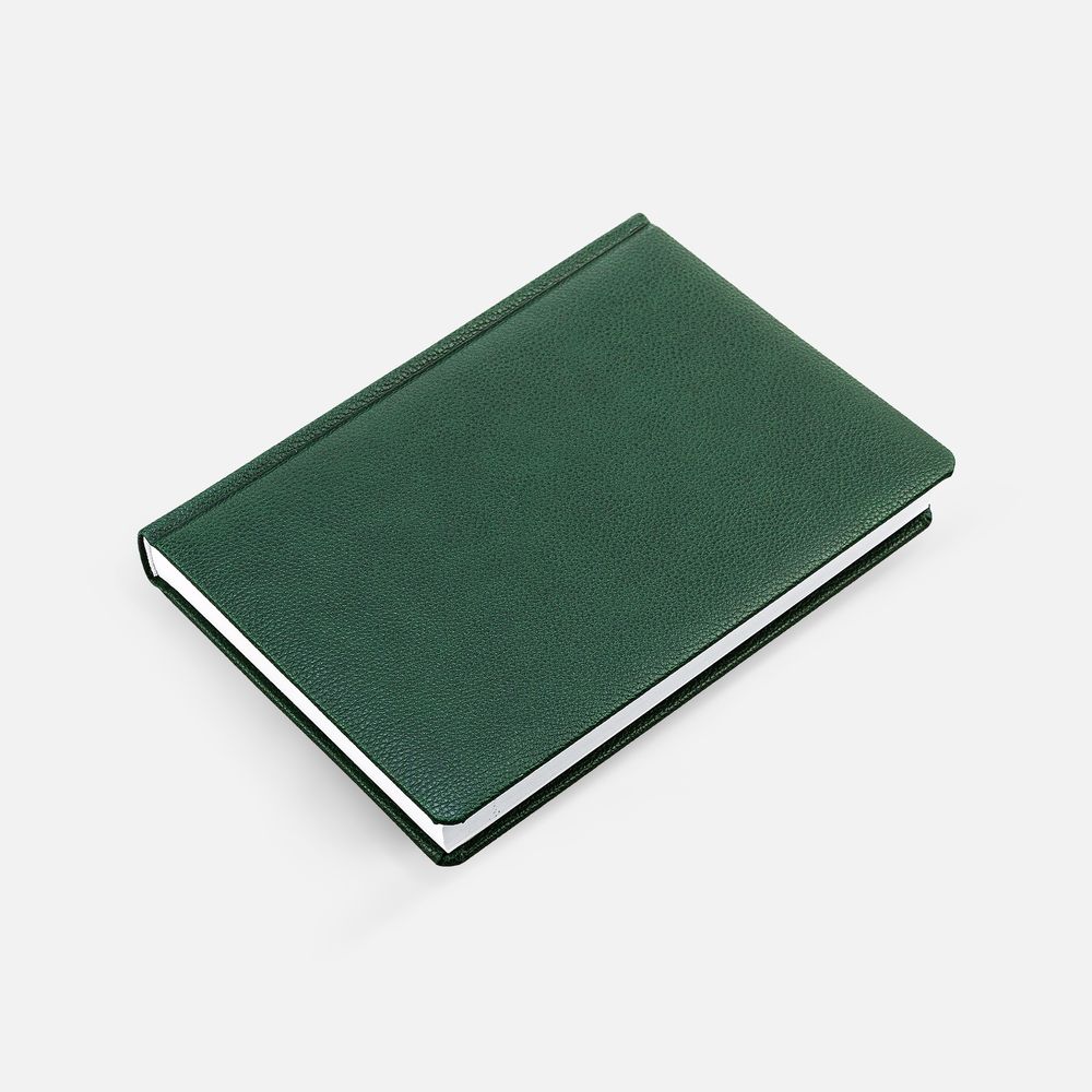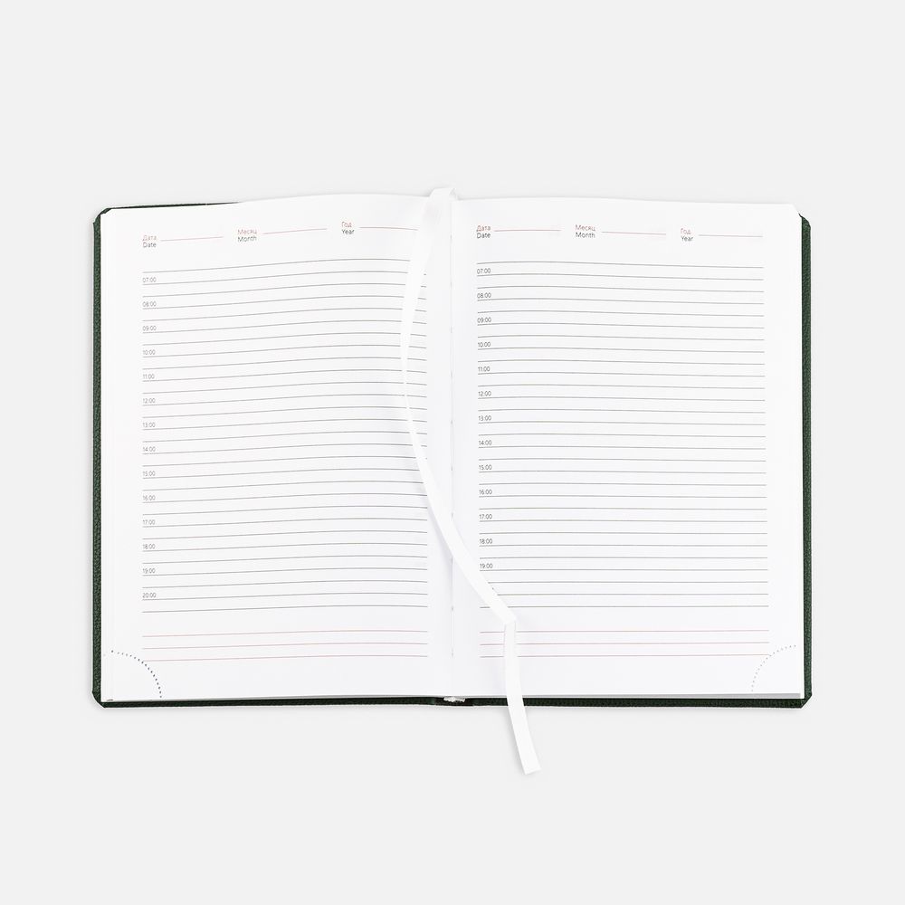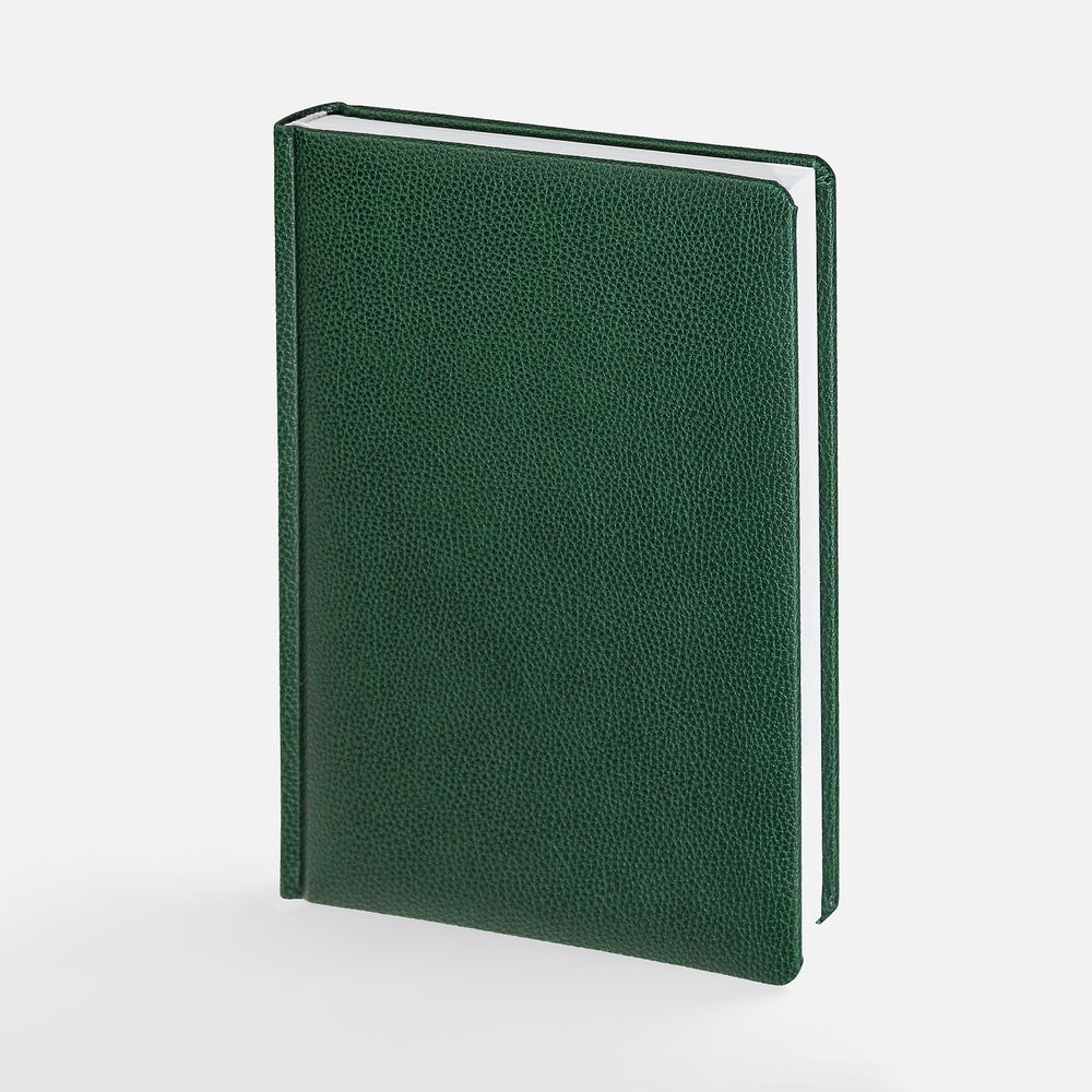 Ежедневник в твердой обложке c поролоном, выполнен из материала La Fite, зеленый FF, дополнен ляссе белого цвета.