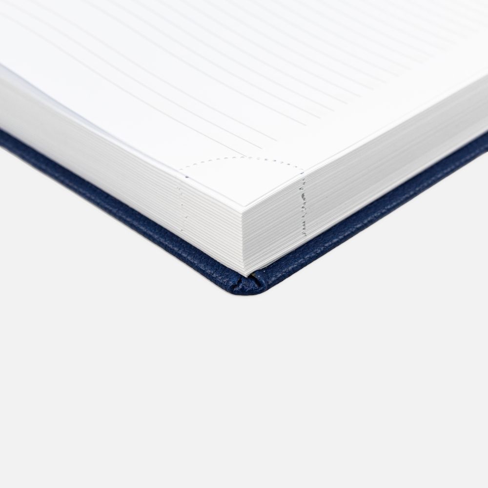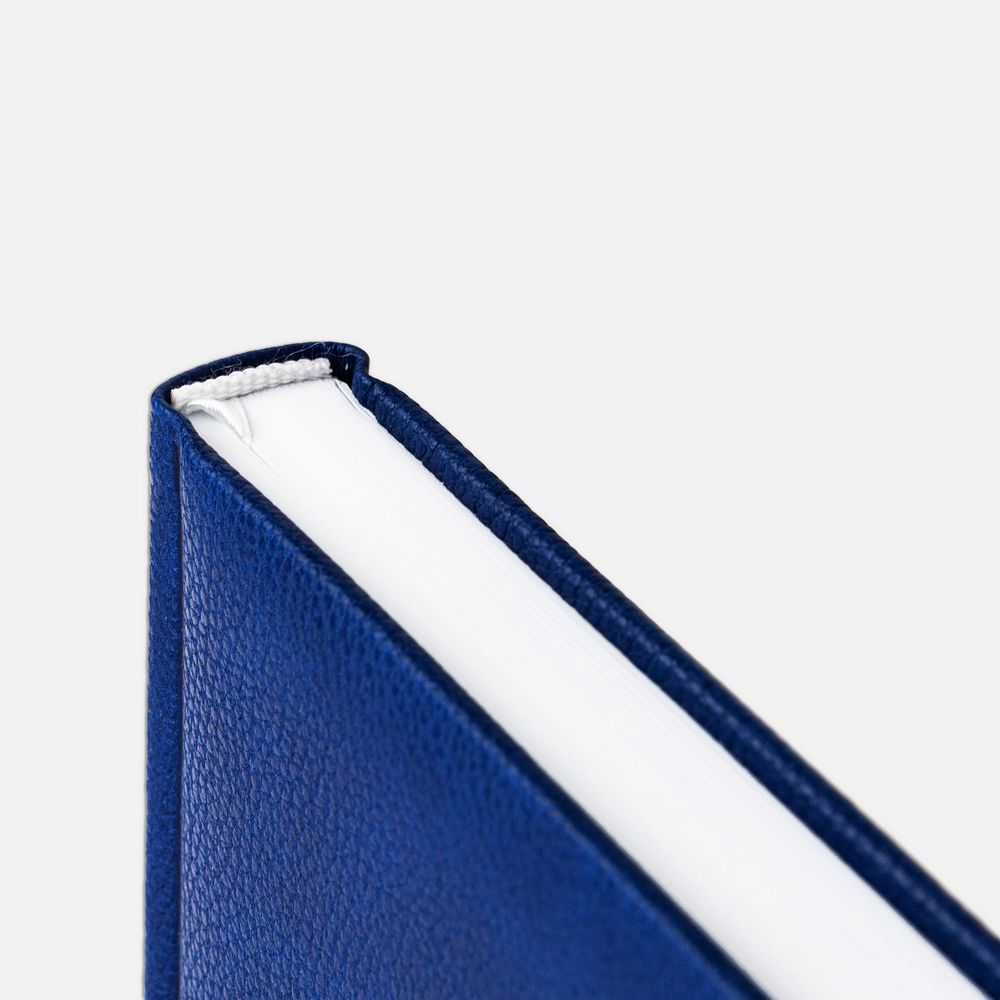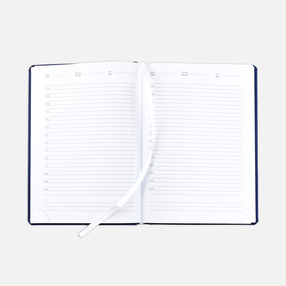 Ежедневник в твердой обложке c поролоном, выполнен из материала La Fite, синий НН, дополнен ляссе белого цвета.
