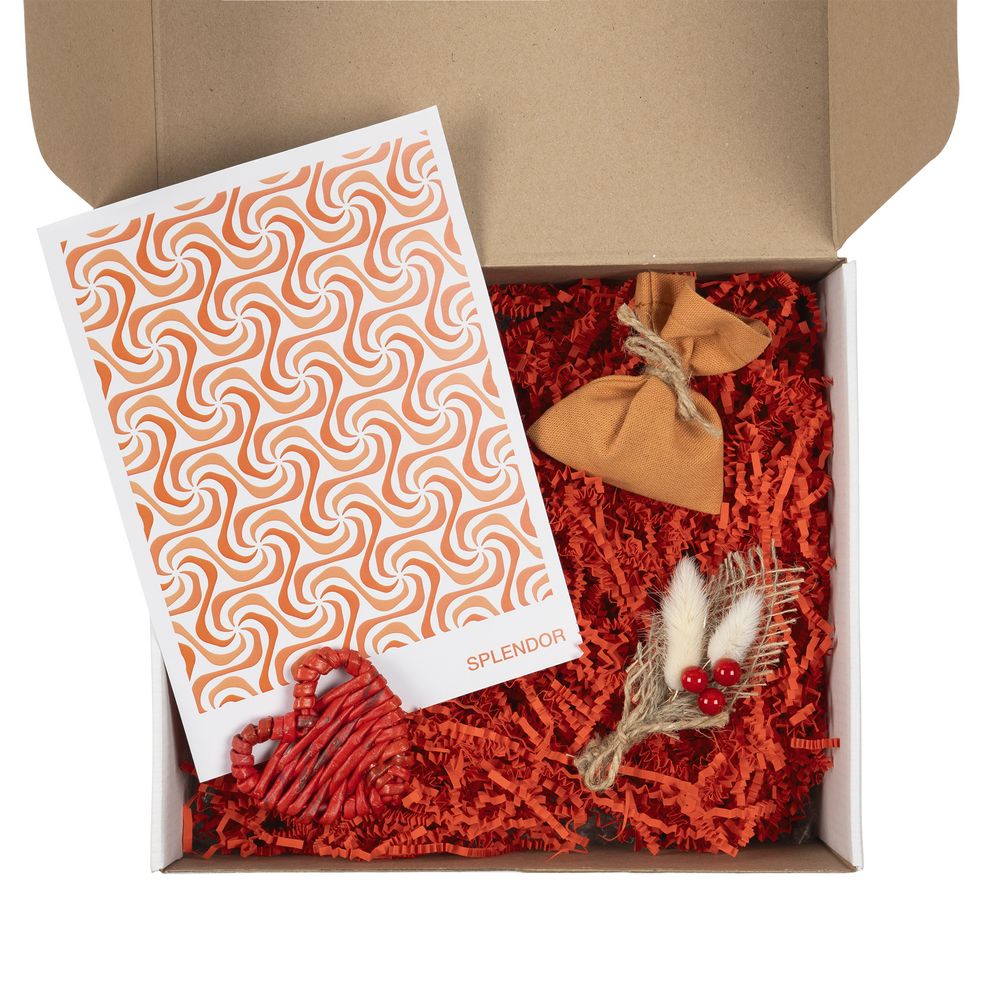 Коробка с наполнителем, шубером, открыткой и милыми украшениями Adorno — готовое решение для упаковки личного и корпоративного подарка.