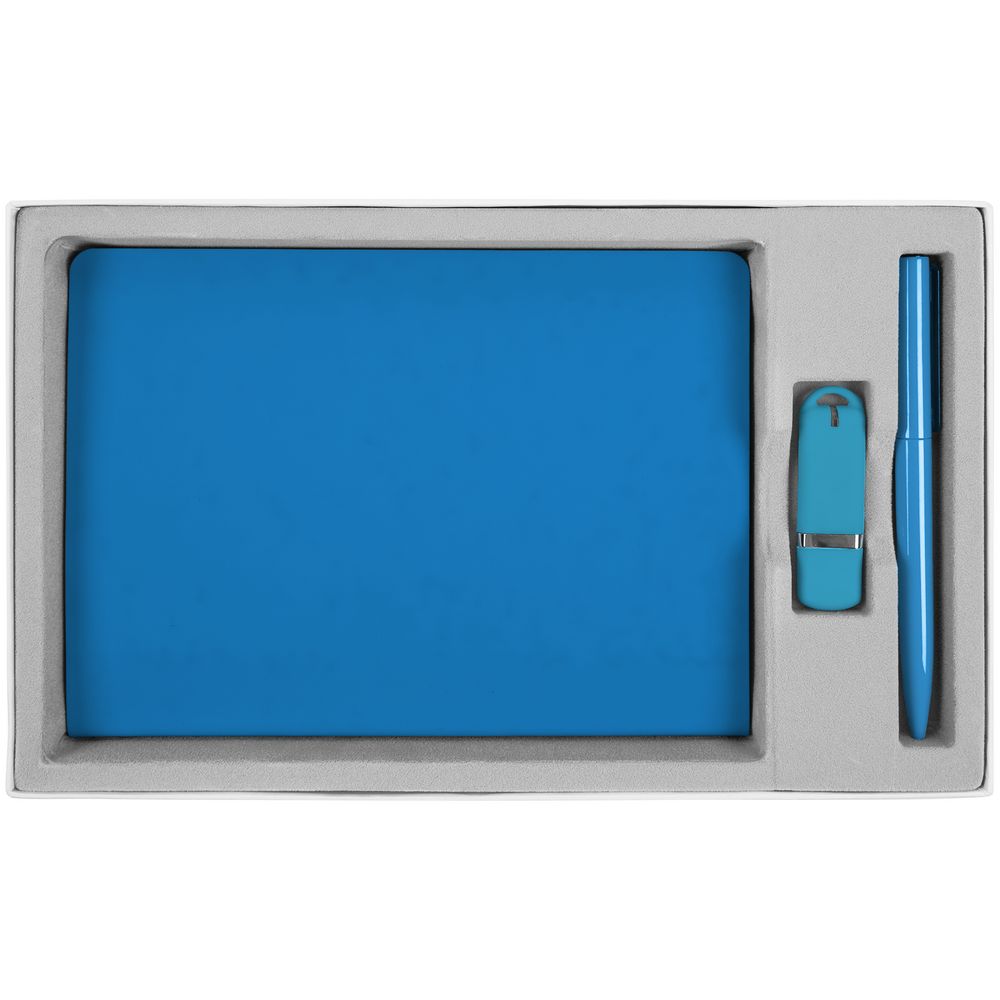Подарочная упаковка для ежедневника 2,5х15х21 см, ручки 1,5х14,2 см и флешки 2х6,7 см.