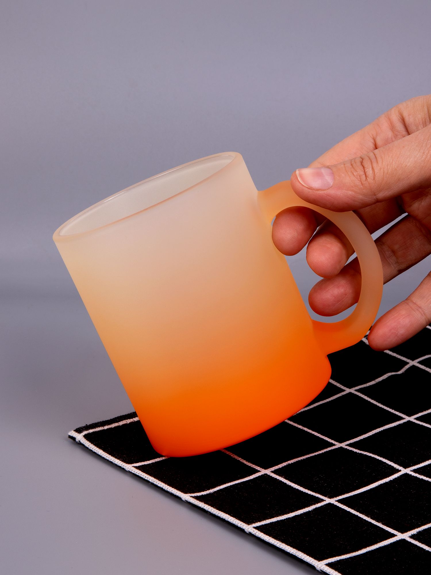 Яркая стеклянная кружка Grade Fade с эффектом омбре и плавным переходом цвета привлекает внимание оригинальным дизайном, а матовая поверхность приятна на ощупь. Подходит для сублимационной печати.