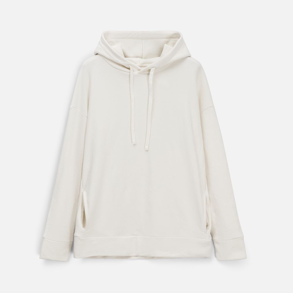 Худи унисекс свободной посадки со спущенным плечом.