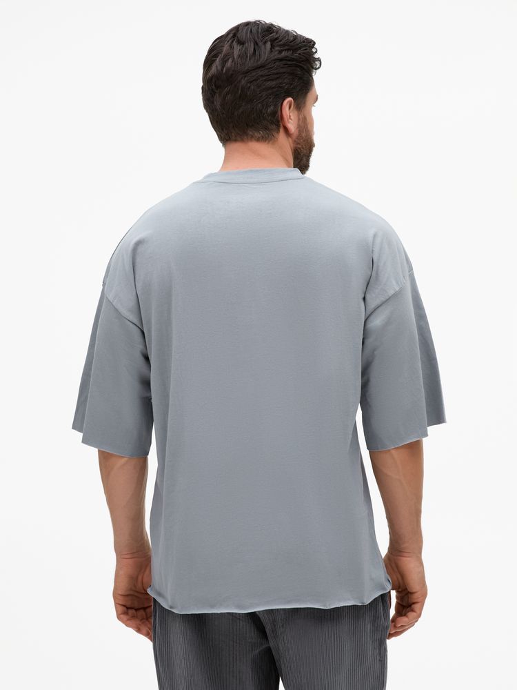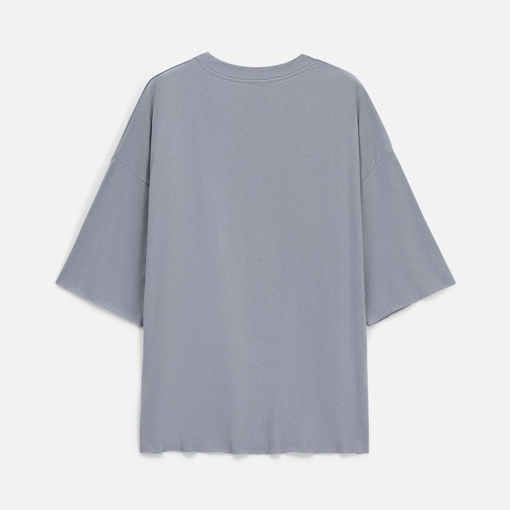 Футболка унисекс свободного кроя со спущенным плечом.