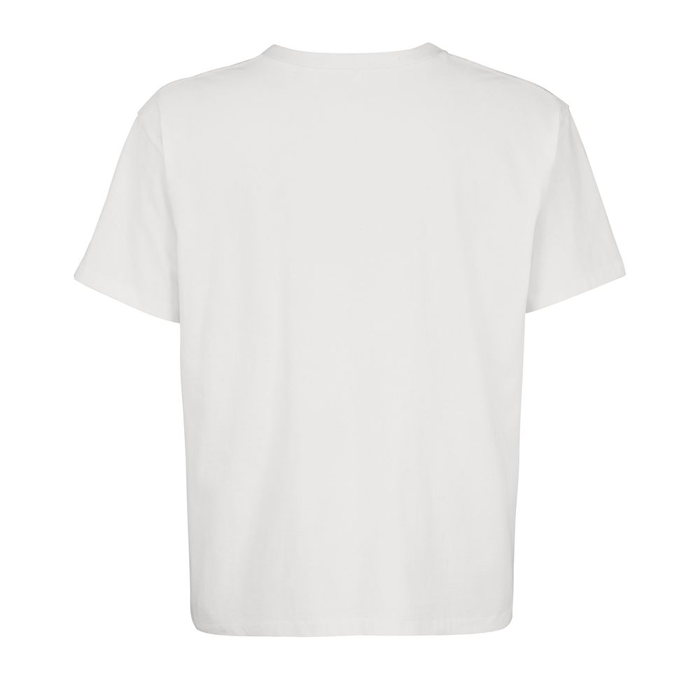 Футболка оверсайз унисекс с круглым вырезом и без боковых швов. Выполнена из смеси переработанного и обычного хлопка. Благодаря повышенной плотности отлично держит форму.