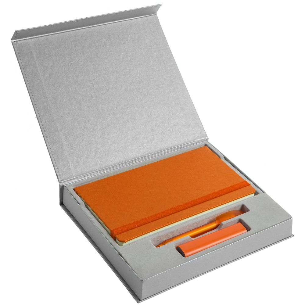 Коробка из переплетного картона, кашированного дизайнерской бумагой Majestic, с крышкой на магните и флокированным ложементом.