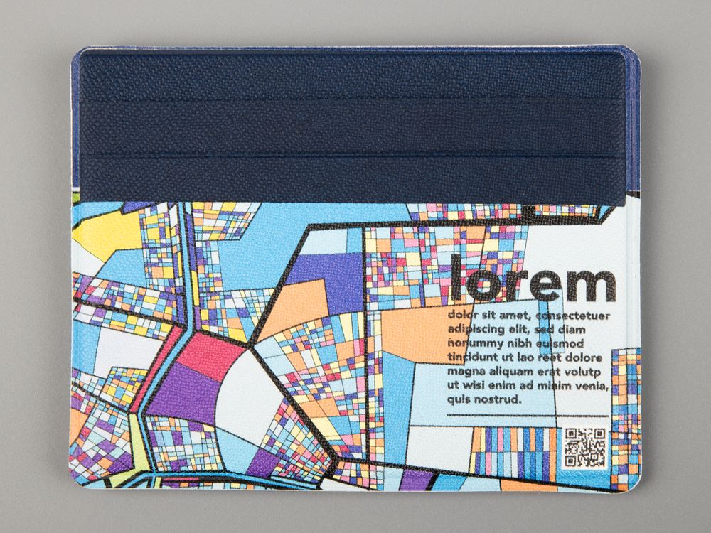 Чехол для карточек из искусственного материала, имитирующего сафьяновую кожу, с шестью отделениями для кредитных карт и одним — для сложенных купюр.