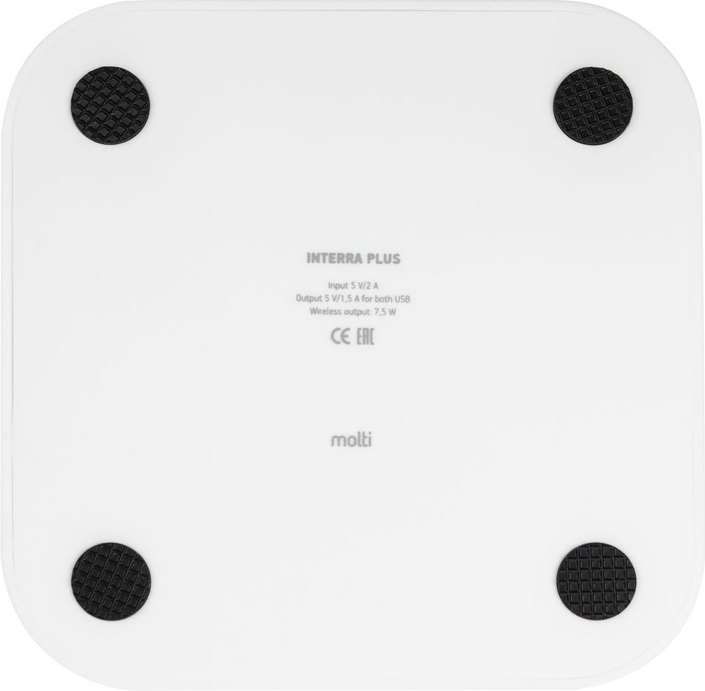 При подключении к внешнему сетевому адаптеру светодиодный индикатор мигнет два раза: устройство Interra Plus готово к размещению на верхней части корпуса смартфона с поддержкой беспроводной зарядки.